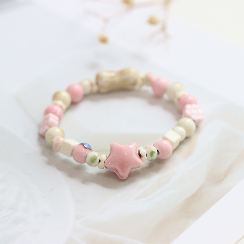 可爱卡通景德镇陶瓷骨头手链小清新学生五角星瓷珠手串饰品540