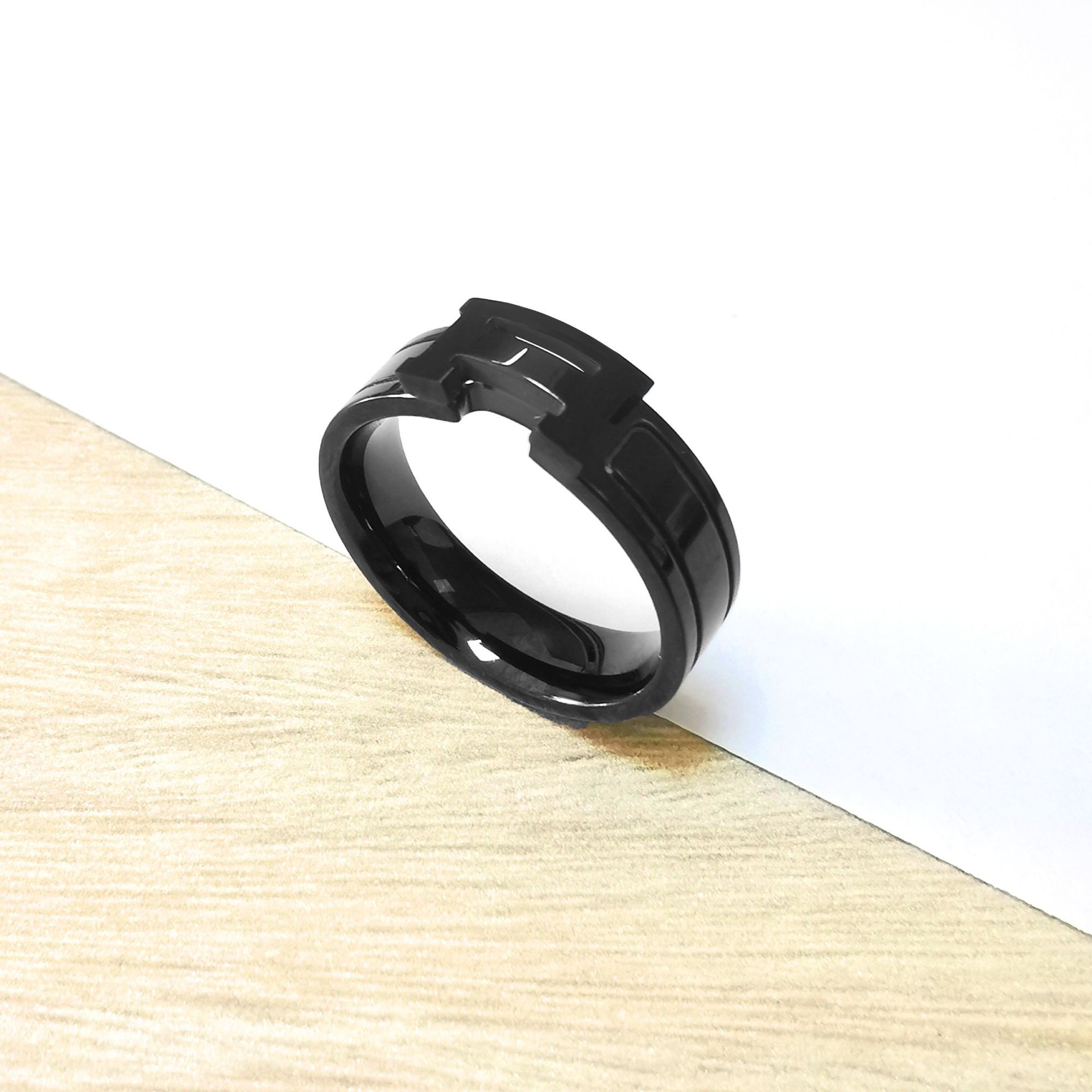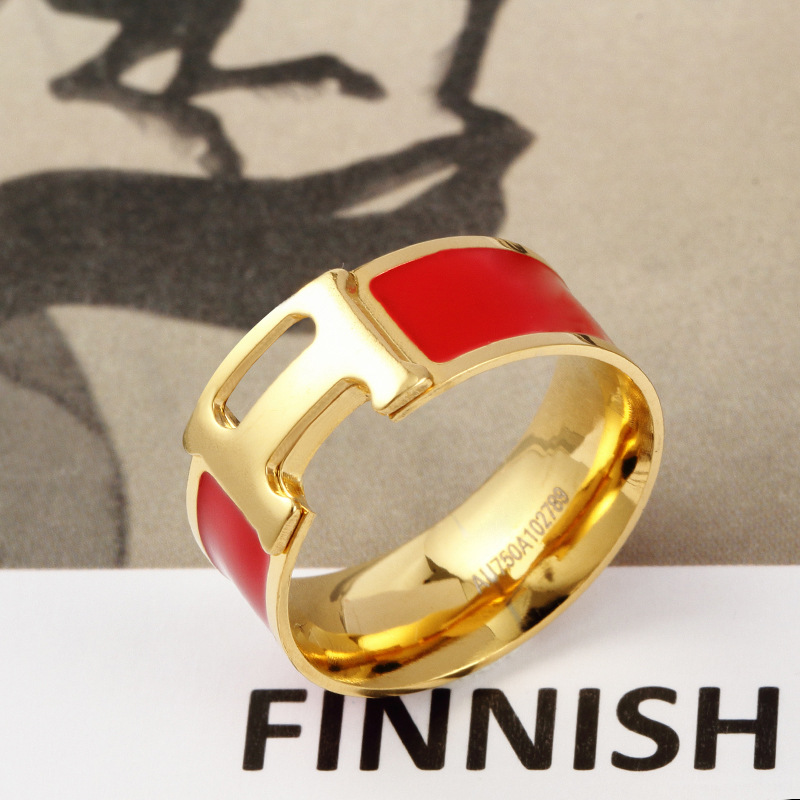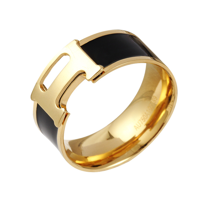 CNC工艺H字母戒指钛钢不掉色指环男女珐琅情侣对戒时尚百搭字母戒