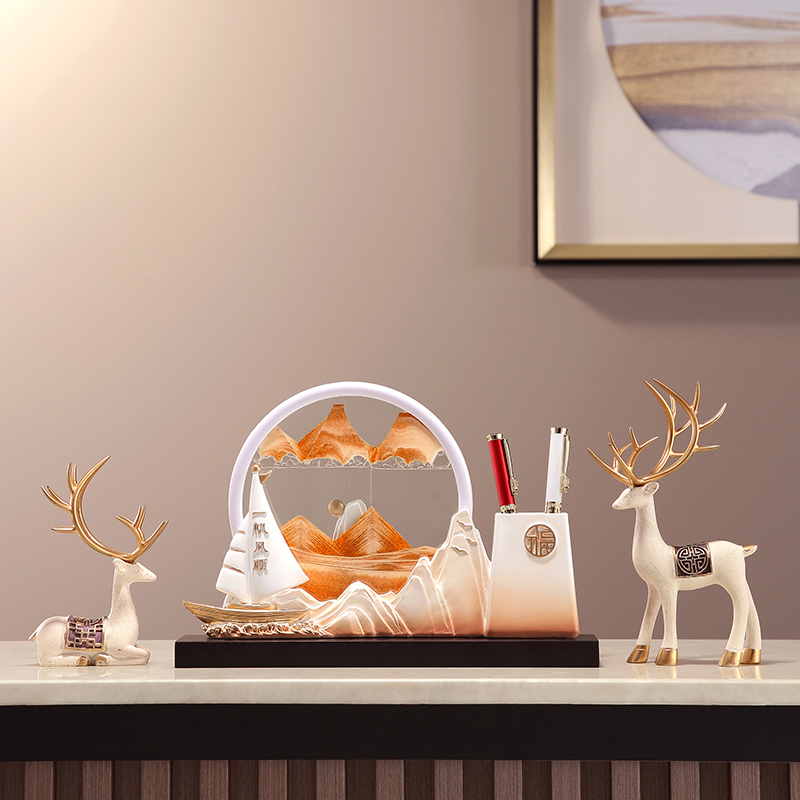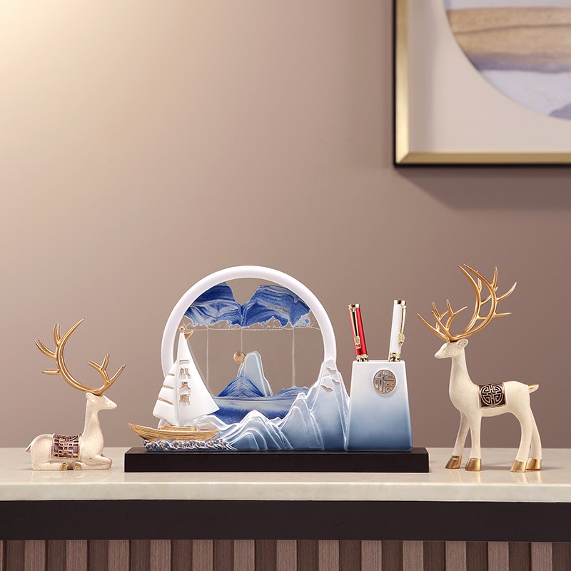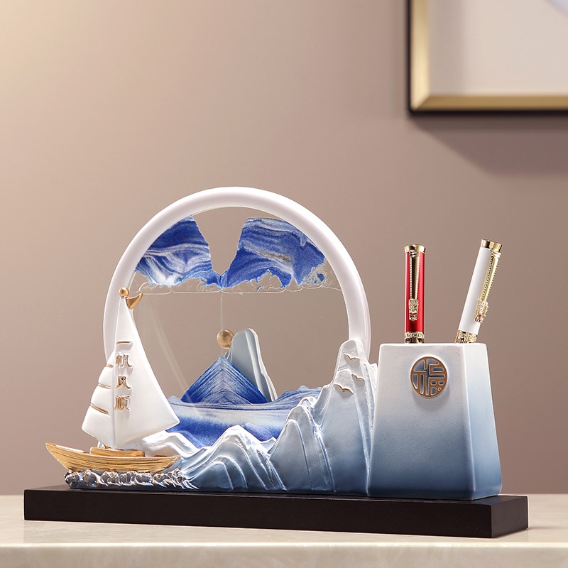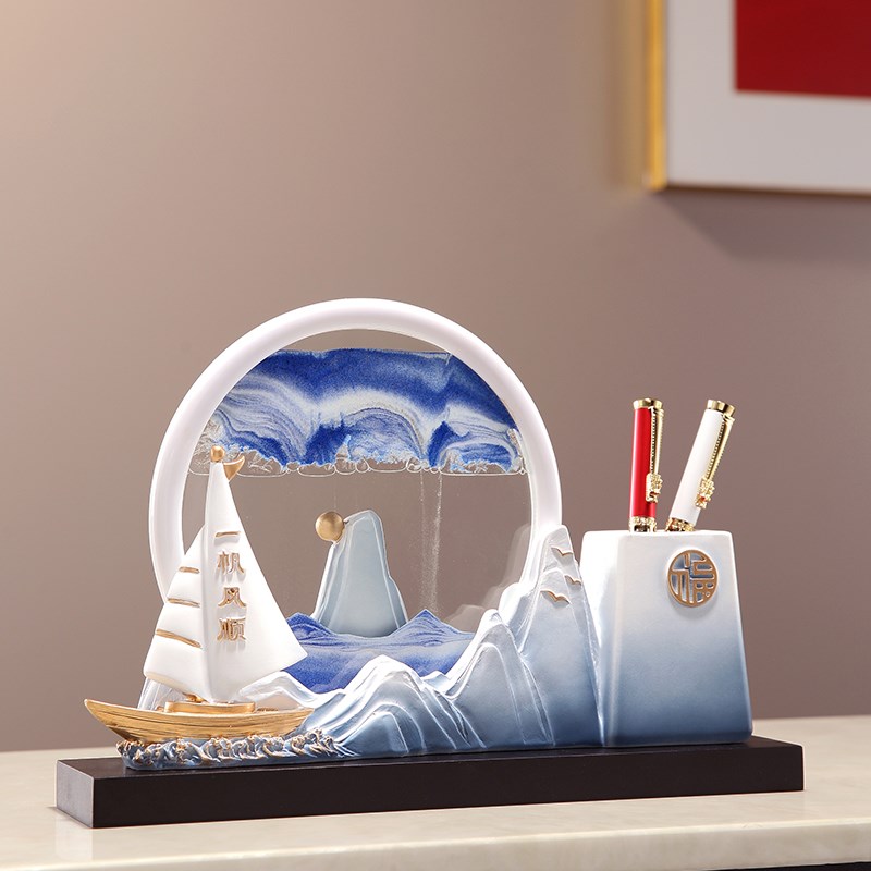 帆船笔筒流沙画办公室桌面u收纳装饰摆件老板男士高档招财风生水