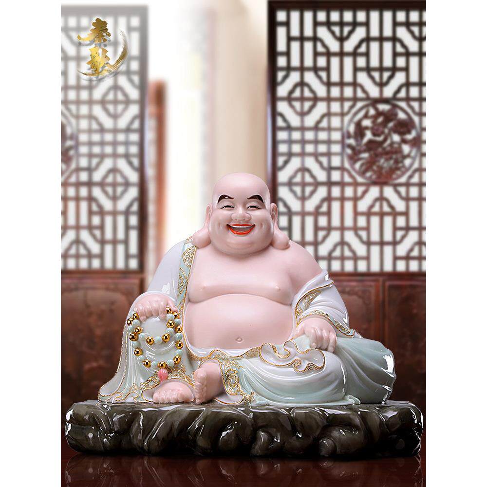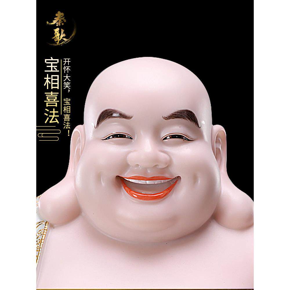 白玉弥勒佛大肚笑颜佛像新中式入口办公室客厅拜弥勒佛招财进宝装