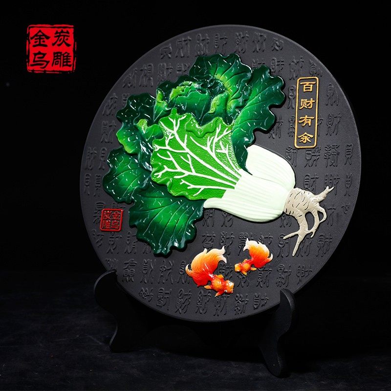 金乌炭雕公司店铺开店送礼装饰创意碳雕工艺品百财摆件开业小礼品