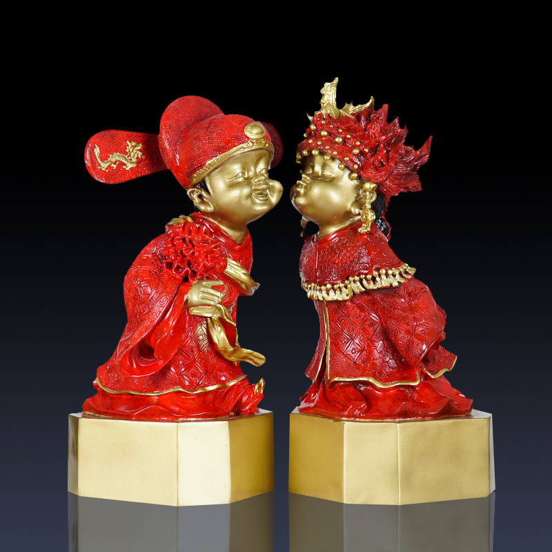 纯黄铜新婚家居创意中式摆件结婚送礼佳品家居客厅中式桌面摆件