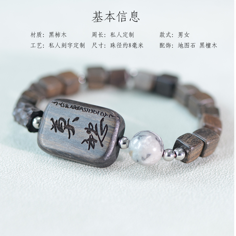 黑柿木男女款私人定制刻字香木手串莫愁8MM切割不规则手串