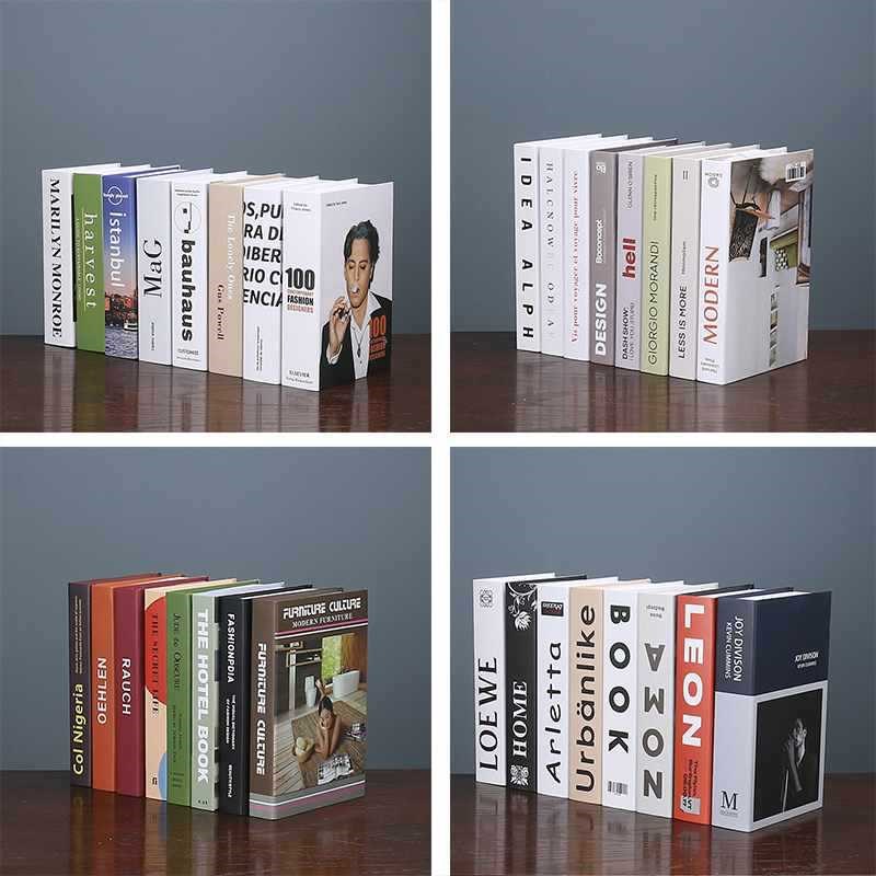 速发样板间摆件i办公室书柜轻奢装饰品J书房现代道具书书架假书书
