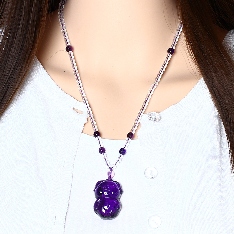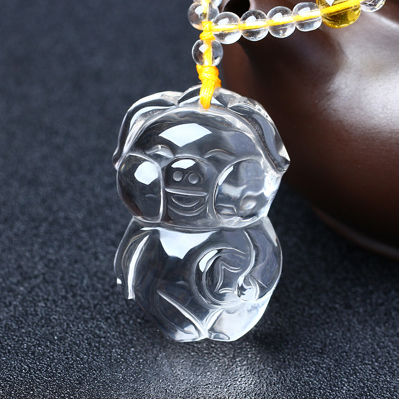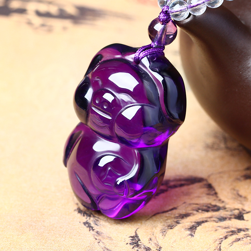 喜柿连猪十二金猪呈祥卡通小猪黄白紫水晶生肖猪吊坠猪形饰品