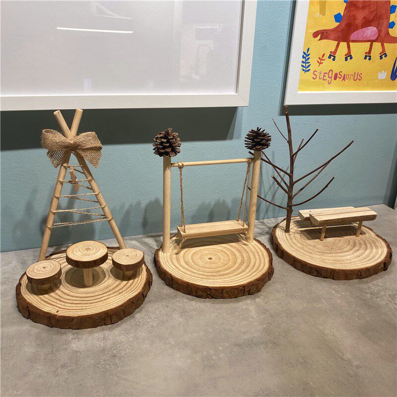 创意手工幼儿园环创天然树杈树枝松木桌面摆件装饰场景布置饰品