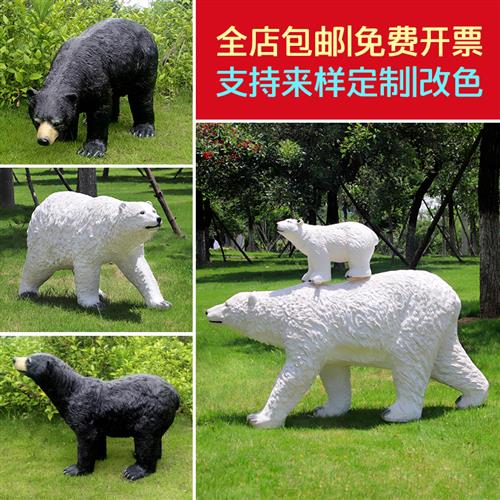 户外仿真北极熊雕塑摆件玻璃钢几何块面熊动物园景区游乐场装饰品