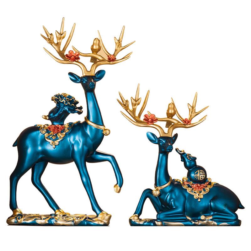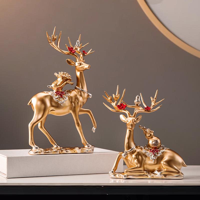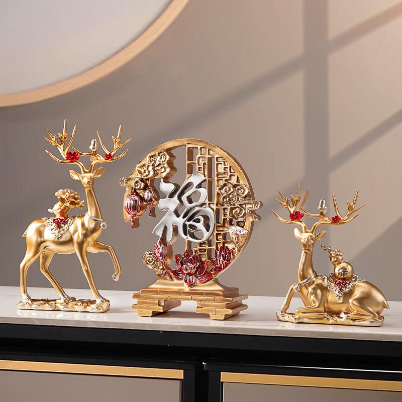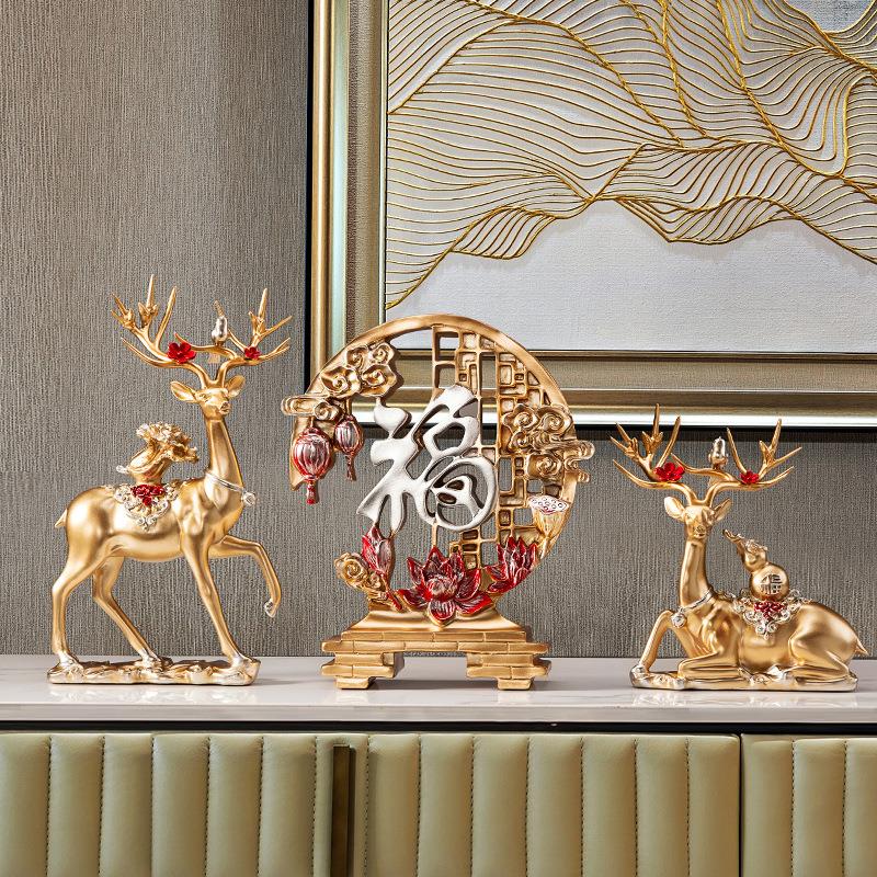 新中式电视柜摆件百财福鹿酒柜角几树脂装饰乔迁新居礼品送人实用