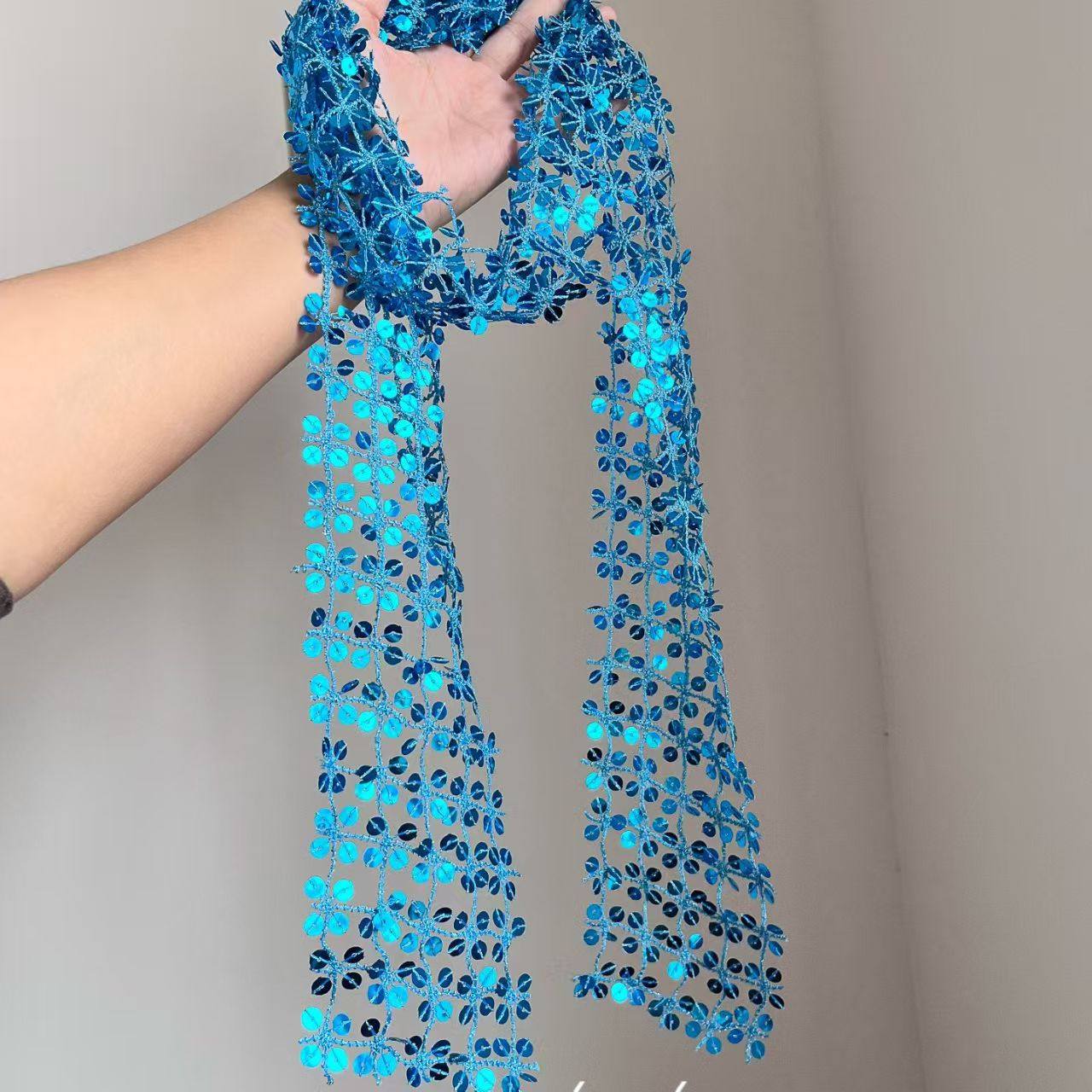 【蓝调时刻】超显白宝蓝色亮片丝巾围巾女百搭装饰新款毛衣链颈链