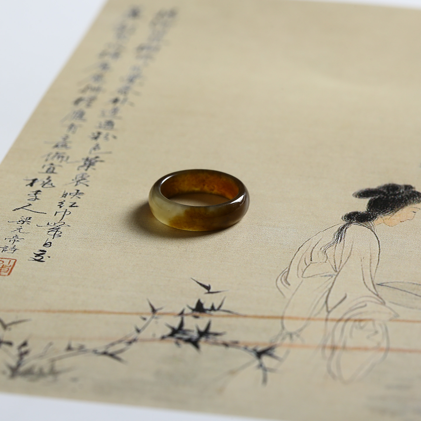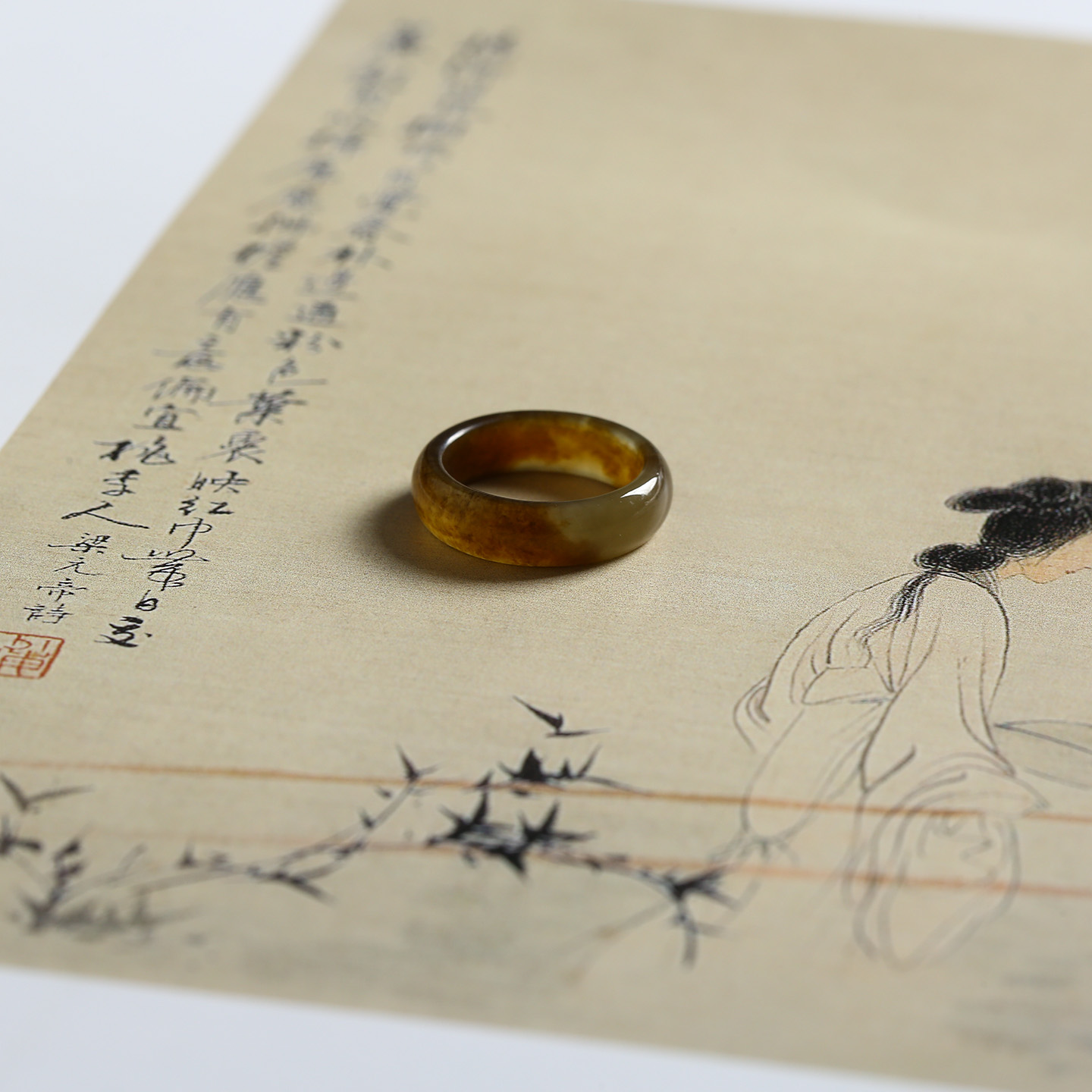 7号戒指 新疆和田玉糖料糖玉窄条泥鳅背小尺码素圈指环 尾戒 5212