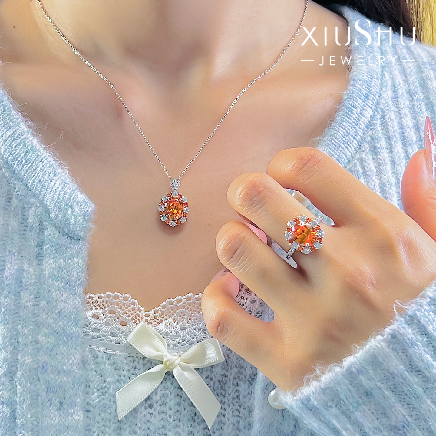 《橙意满满 》秋日暖阳满钻芬达橙色925银项链吊坠彩宝款精切新款