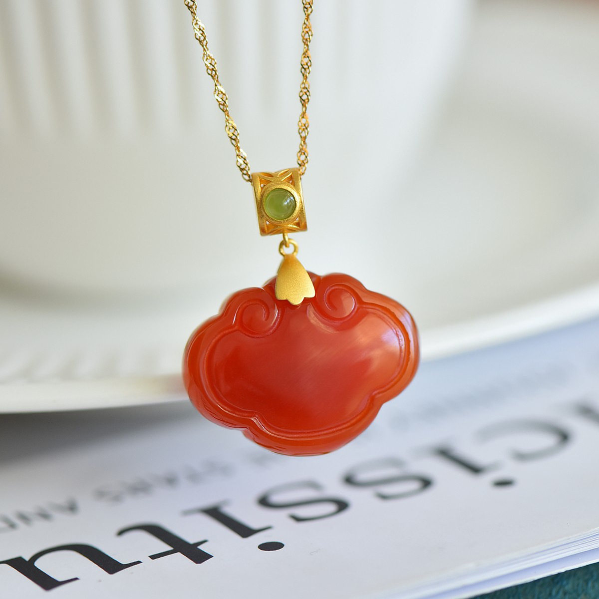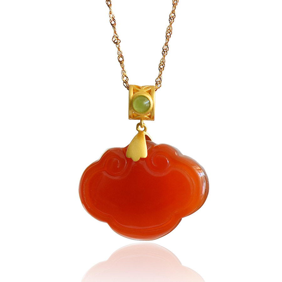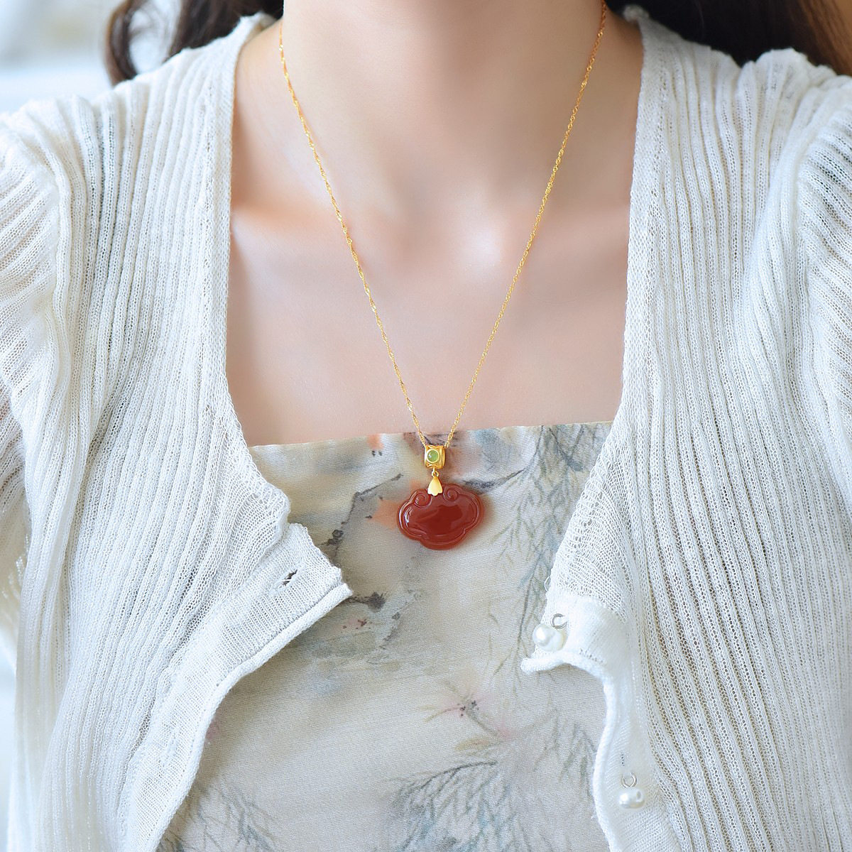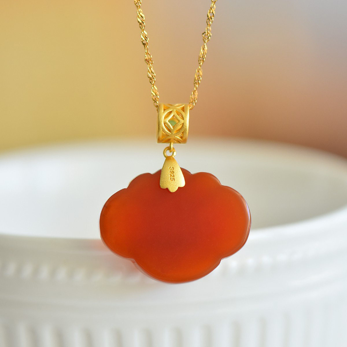 带证书S925纯银镀金镶红玛瑙吊坠新中式国潮红玉髓如意挂件高级感
