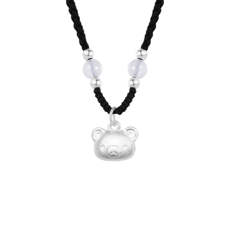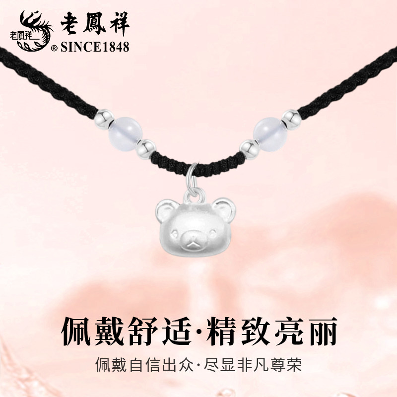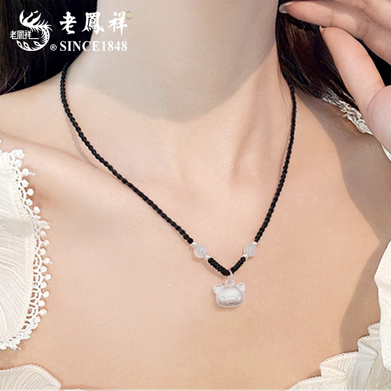老凤祥足银轻松熊吊坠甜美轻奢小众编绳项链情人节生日礼物送女友