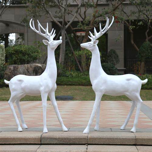 户外仿真玻璃钢白鹿雕塑落地庭院园林景观商场婚礼装饰白色鹿摆件