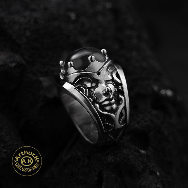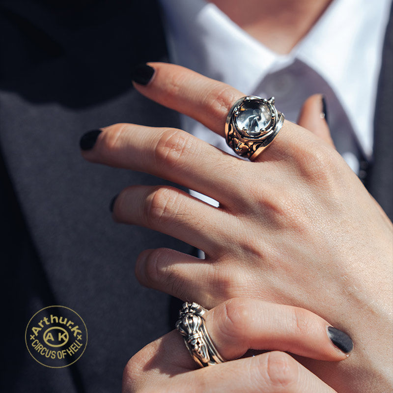 Arthur.k 伊邪娜美 拂晓戒指男复古骷髅头水晶石镶嵌个性潮款指环