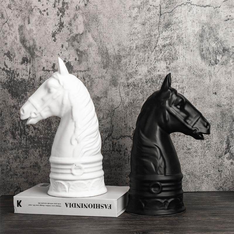战马件现简脂约摆欧式黑色白色代树马头摆件书档样板房HSI售楼处