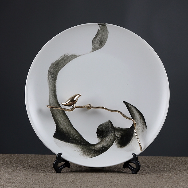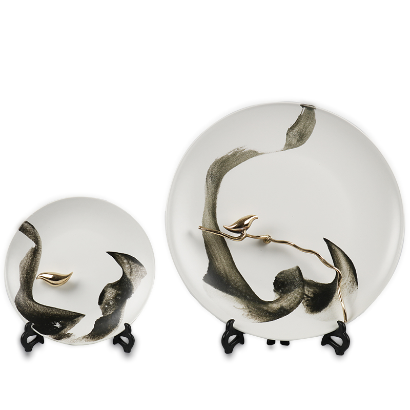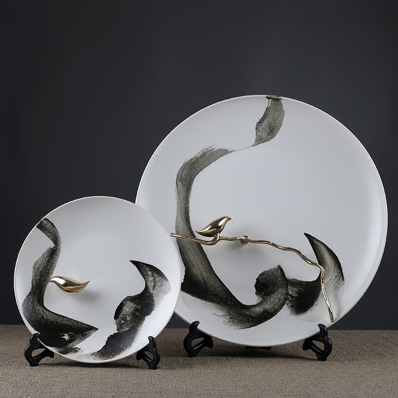 现代新中式赏盘摆件样板房会所酒店玄关电视柜台软装饰陶瓷工艺品