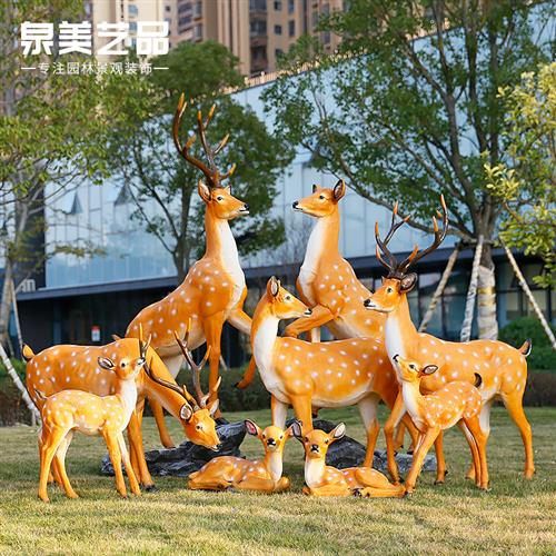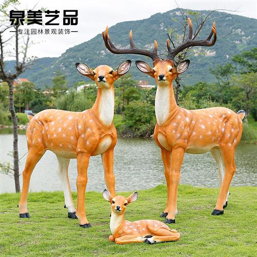 仿真梅花鹿摆件玻璃钢鹿雕塑花园庭院子动物模型户外园林景观装饰