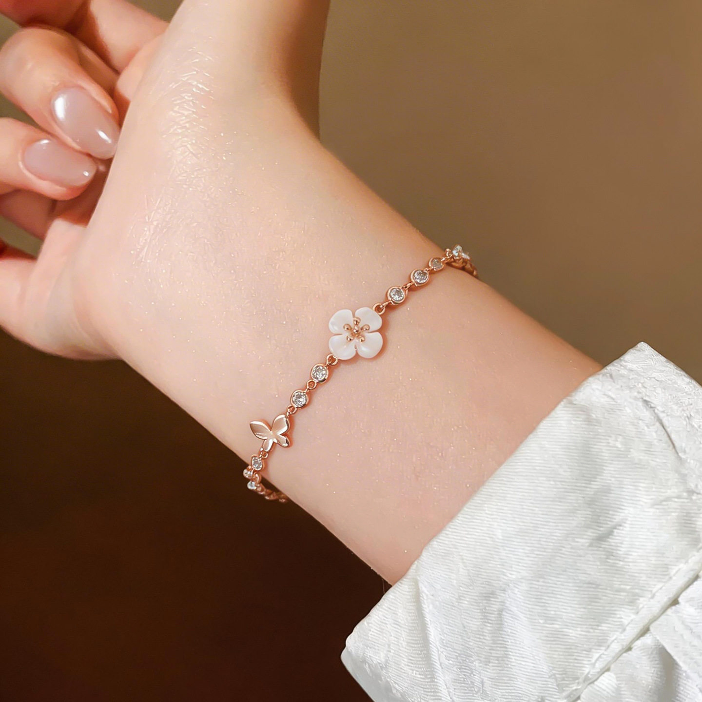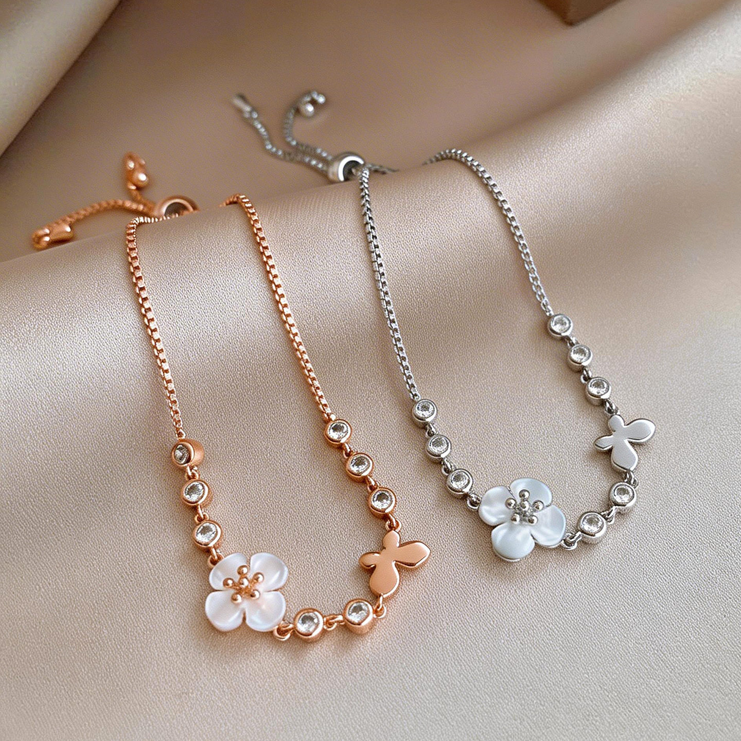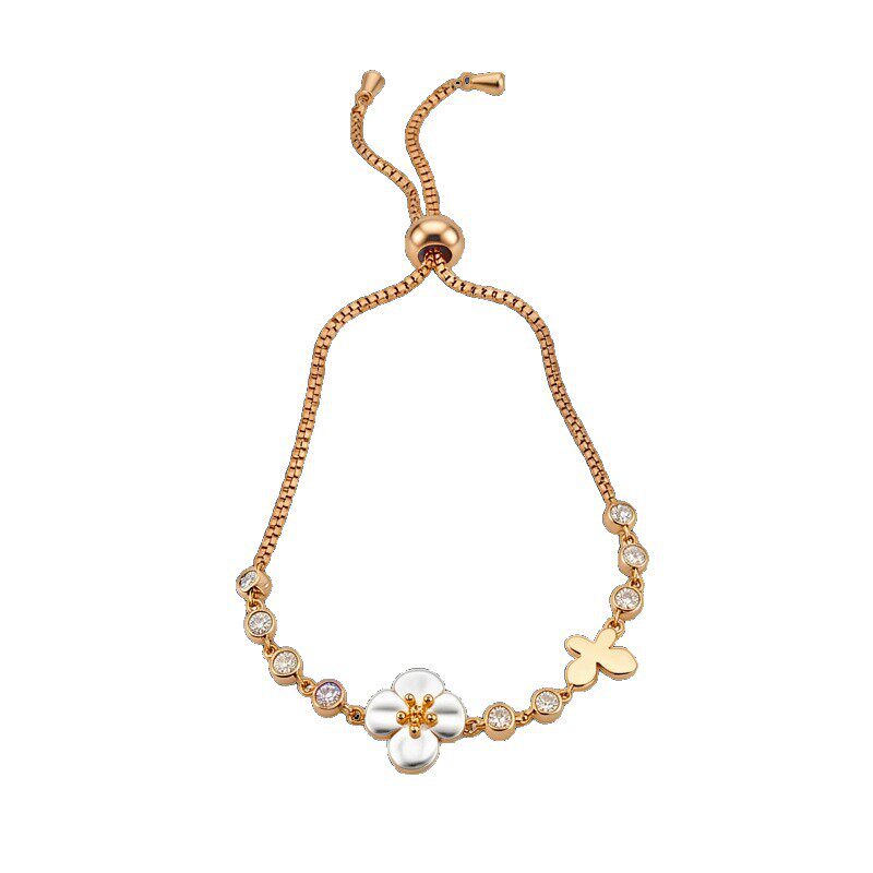 Korean Shell Bracelet, Zircon Floral Minimalist Bangle