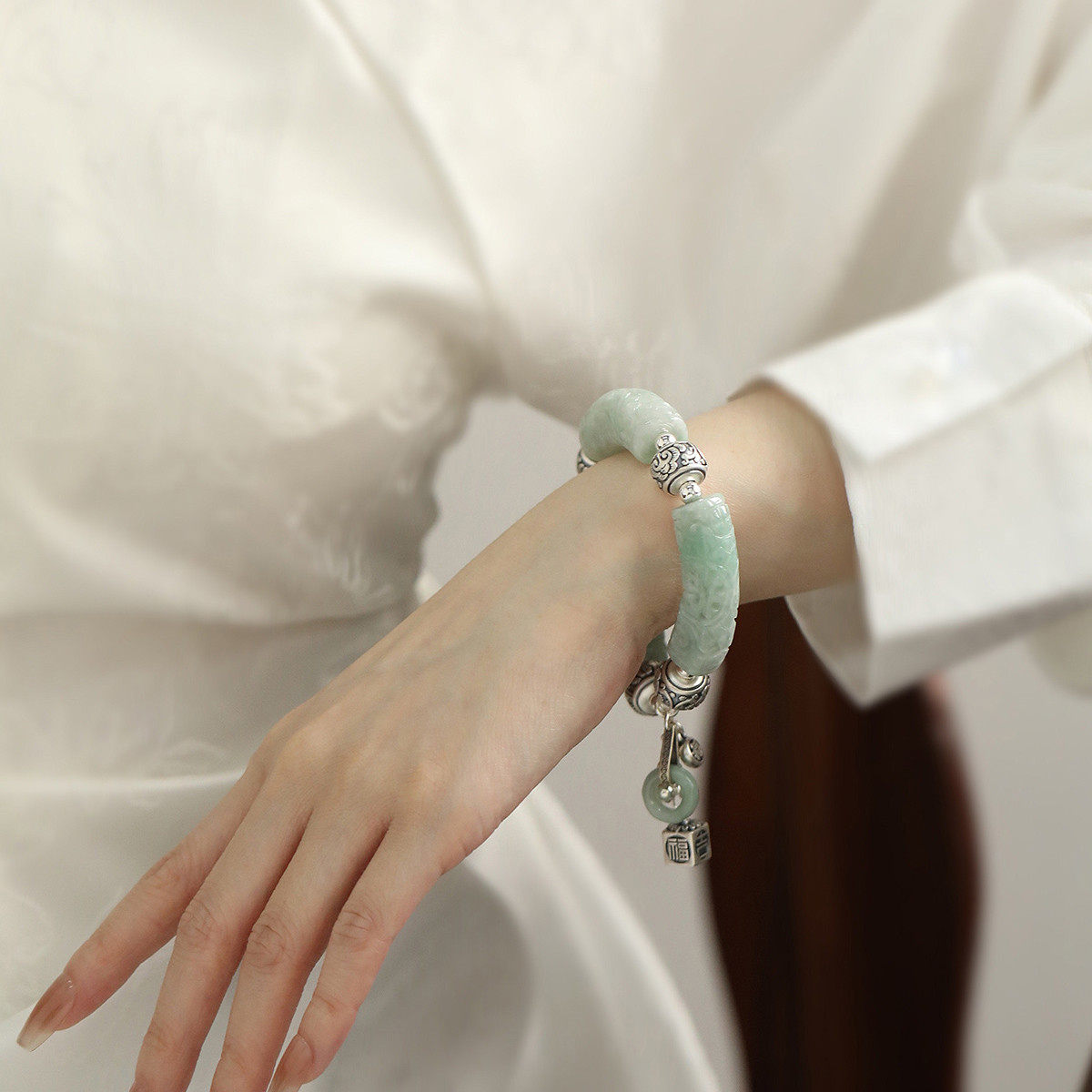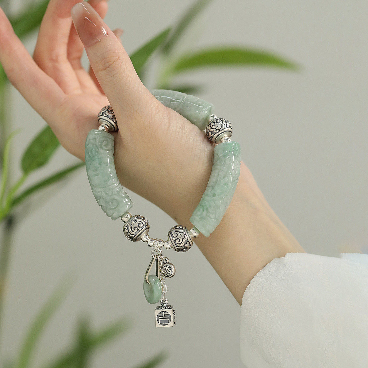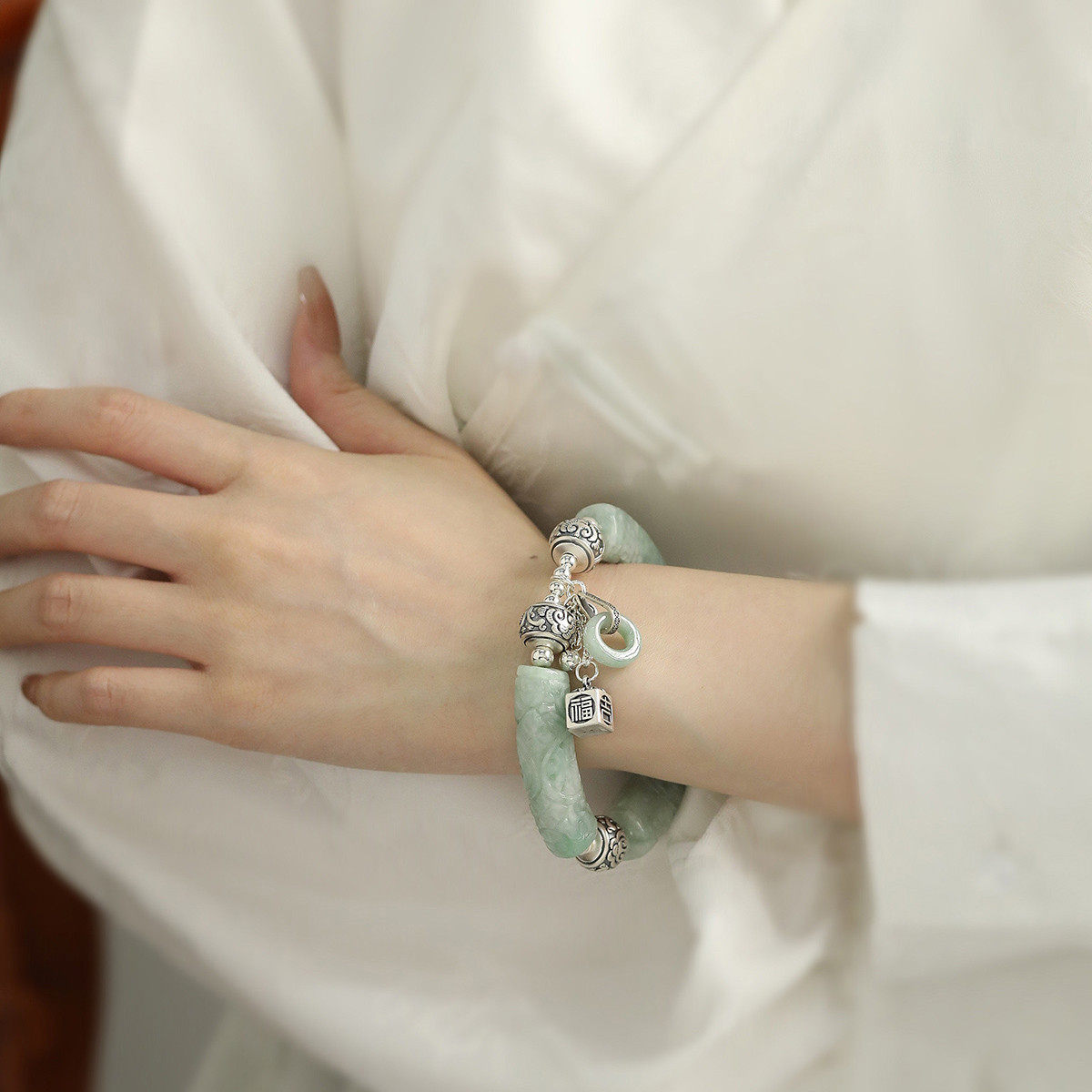 足银999翡翠A货弯管跑环手链女复古国风新中式个性轻奢小众饰品