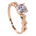 AU750玫瑰金D色莫桑石满钻双层四爪戒指纯银香槟个性钻戒精致时尚