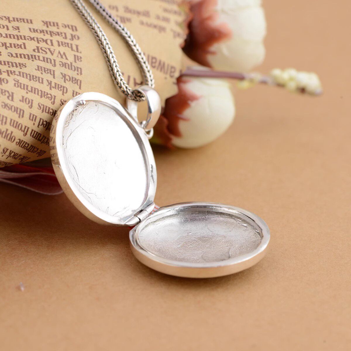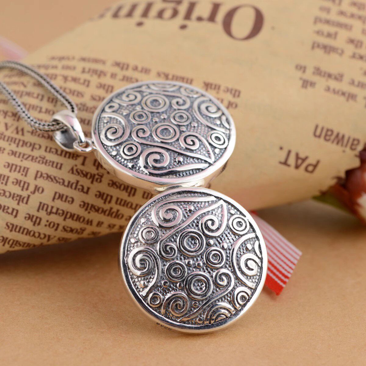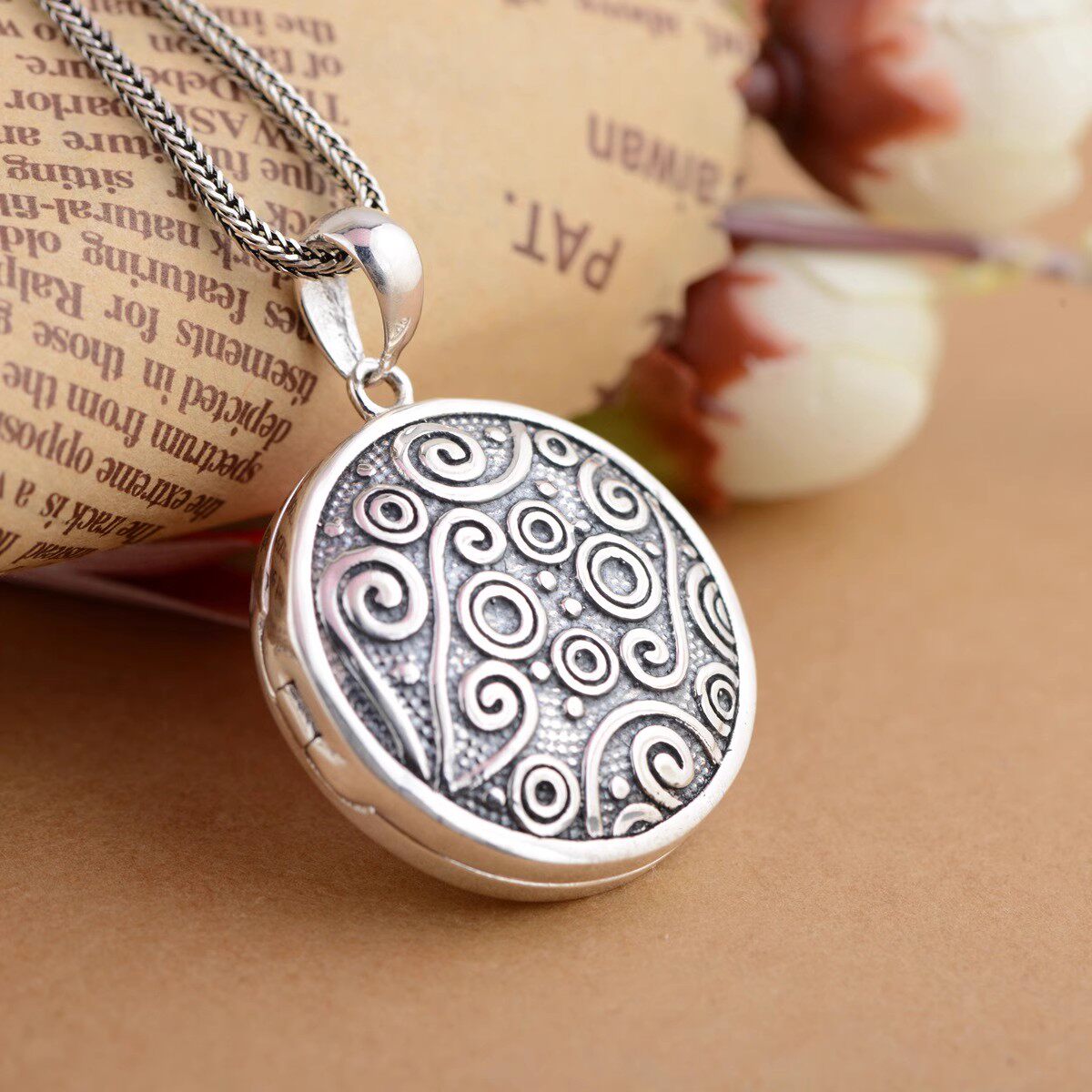 纯银吊坠项坠s925银泰银复古男女圆形嘎乌盒可打开装放相片东西