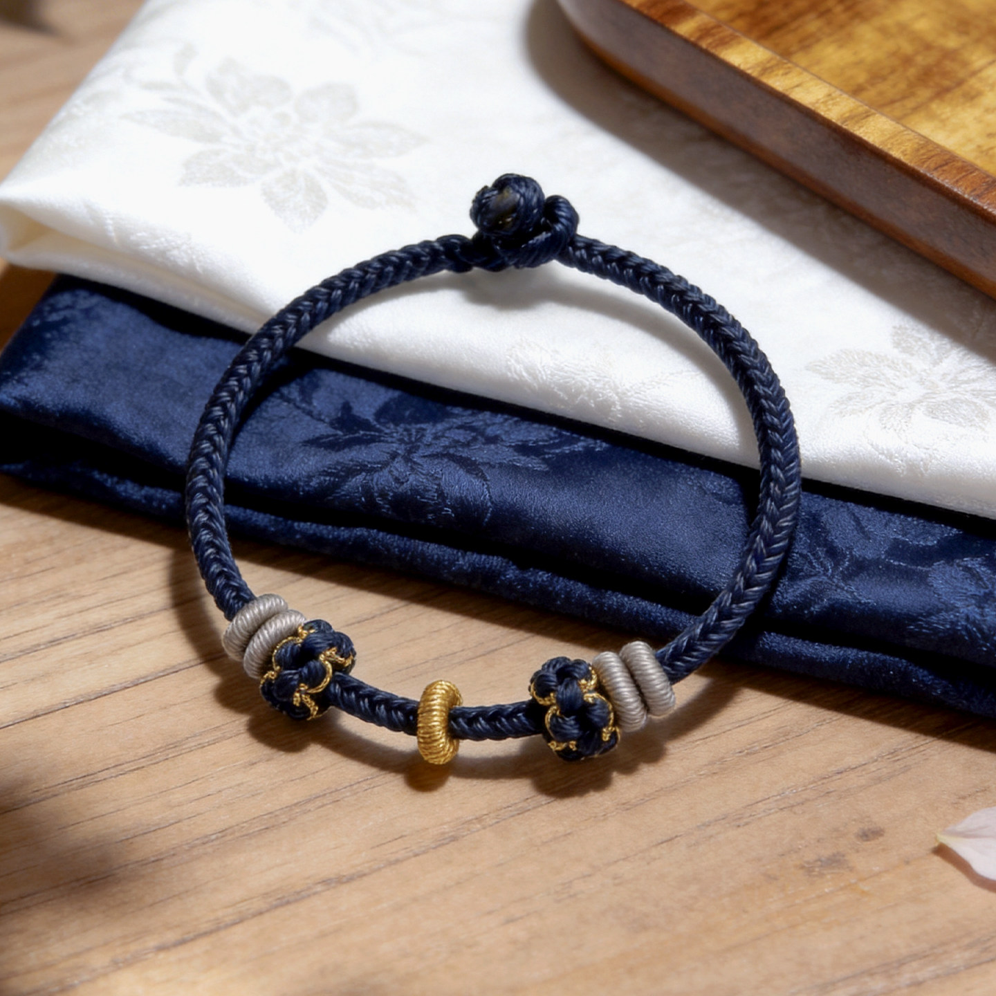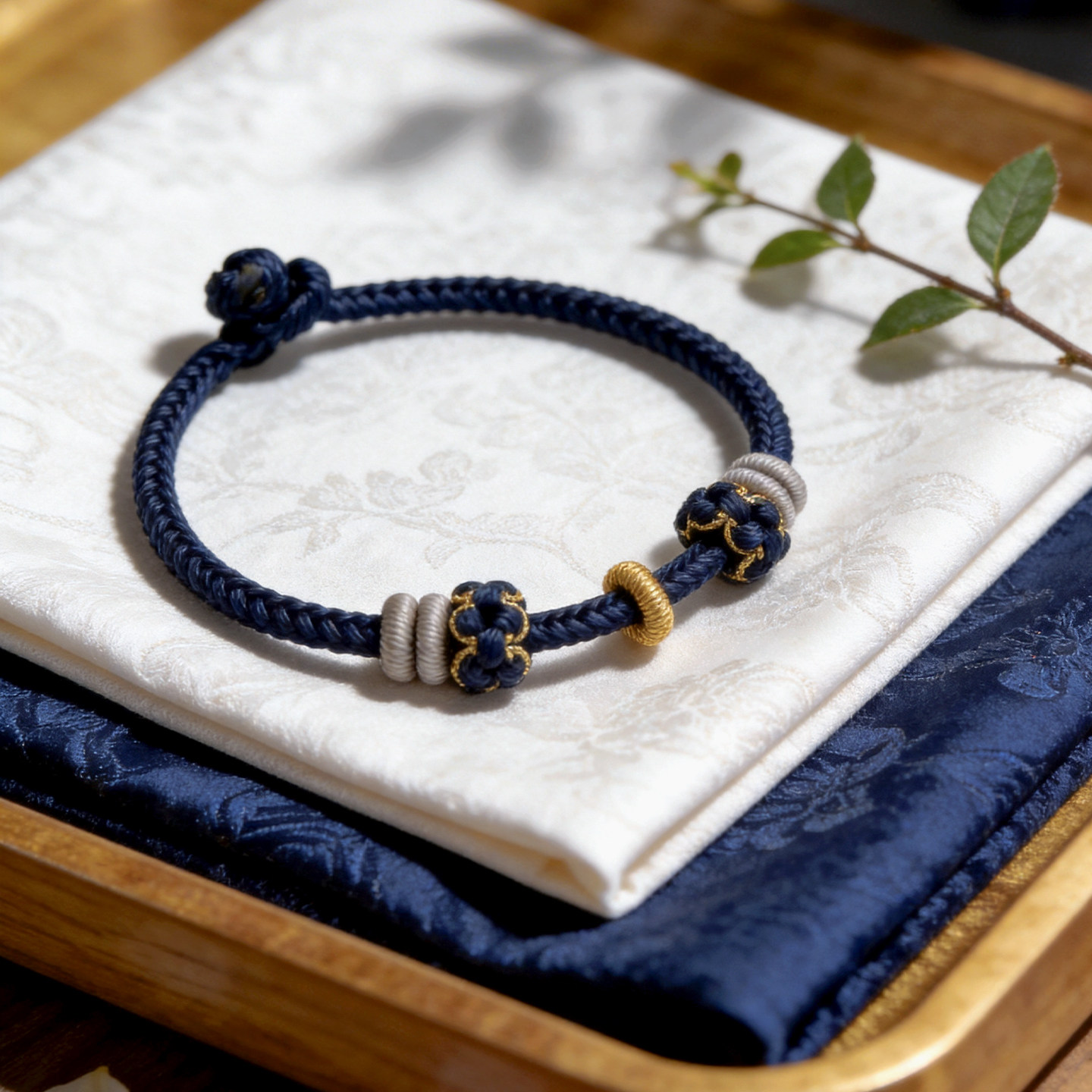 简约手工编织绳蓝色满串手绳可穿珠可串黄金转运珠可调节编绳手链