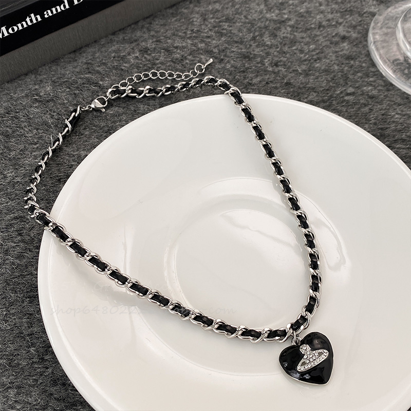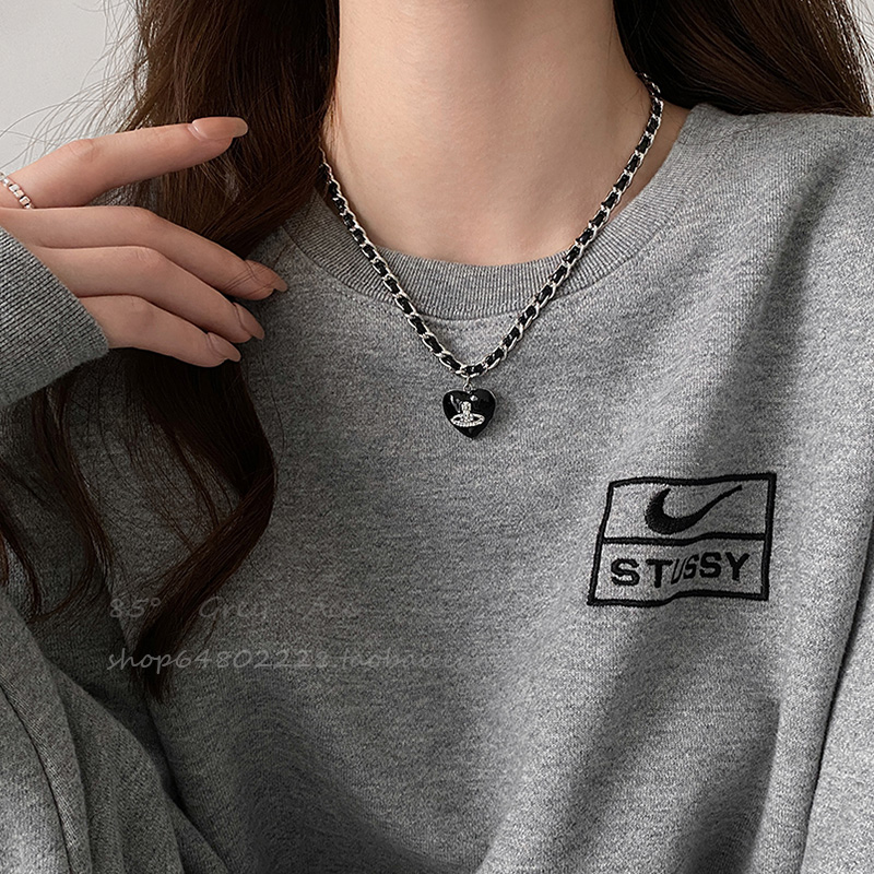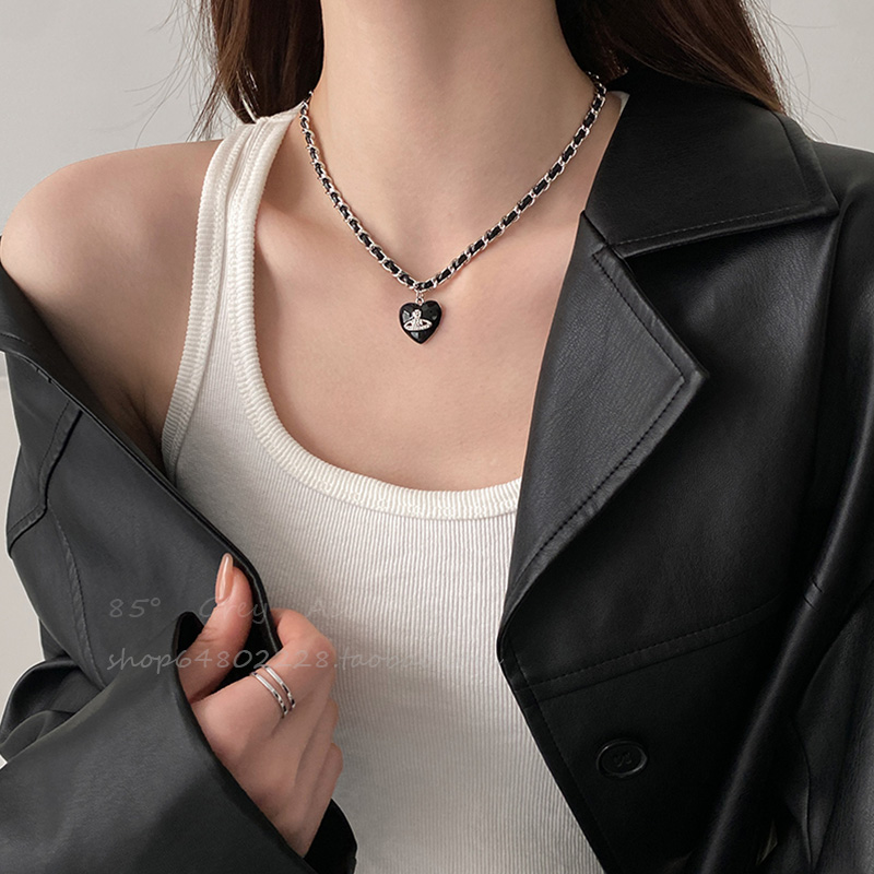 甜酷辣妹黑色爱心土星编织项链女爆款高级感锁骨链小众设计脖颈链