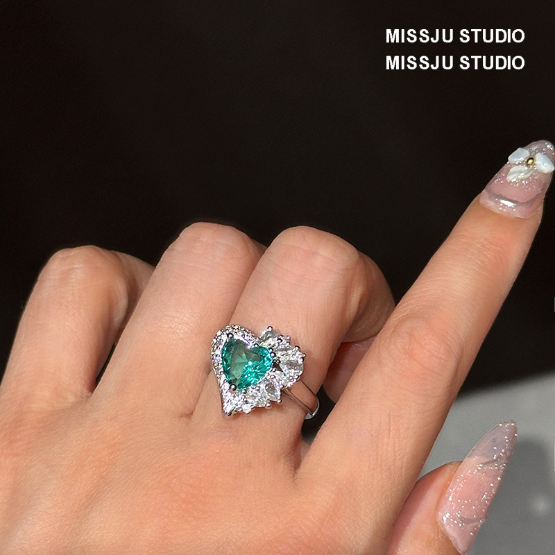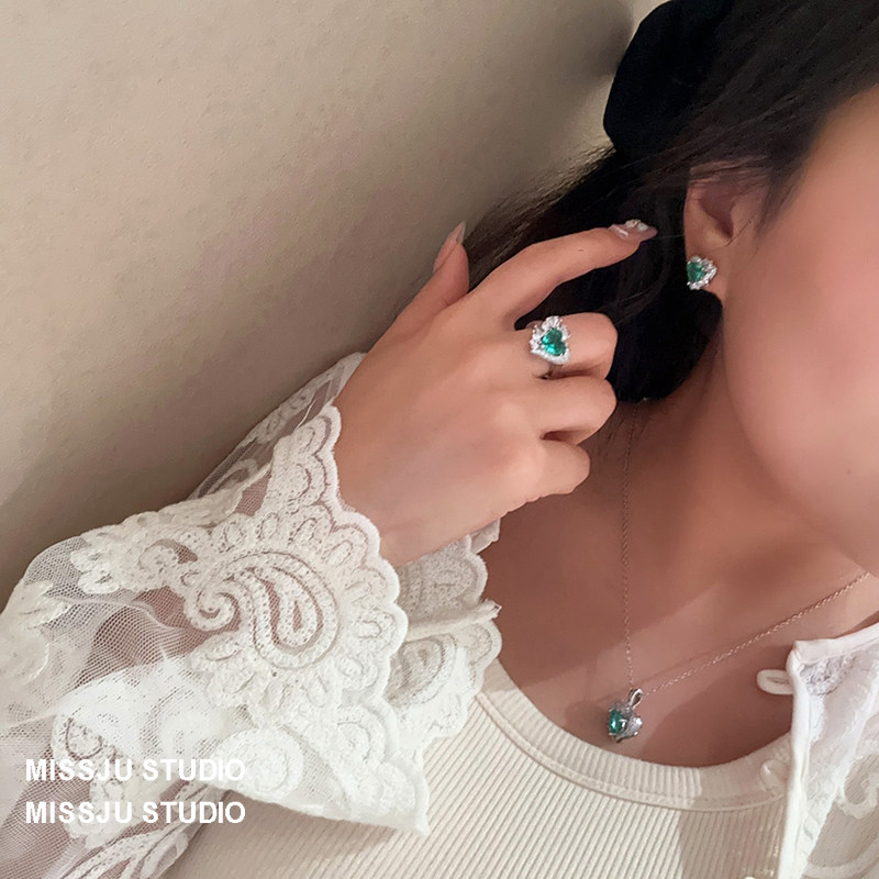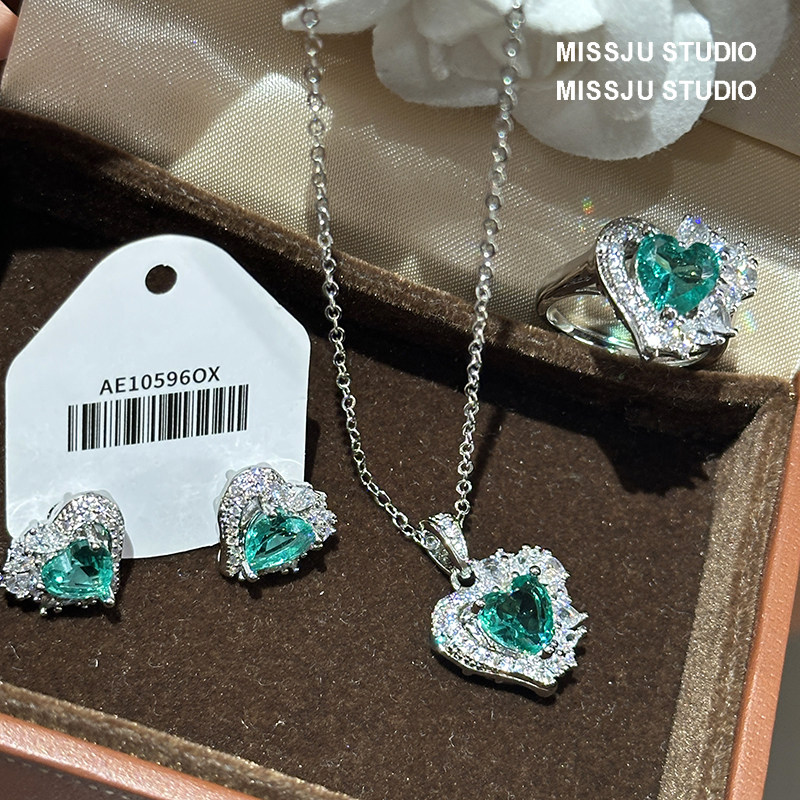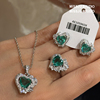 绿色爱心水晶海洋之心水滴耳环项链戒指套装宴会奢华大气耳钉宴会