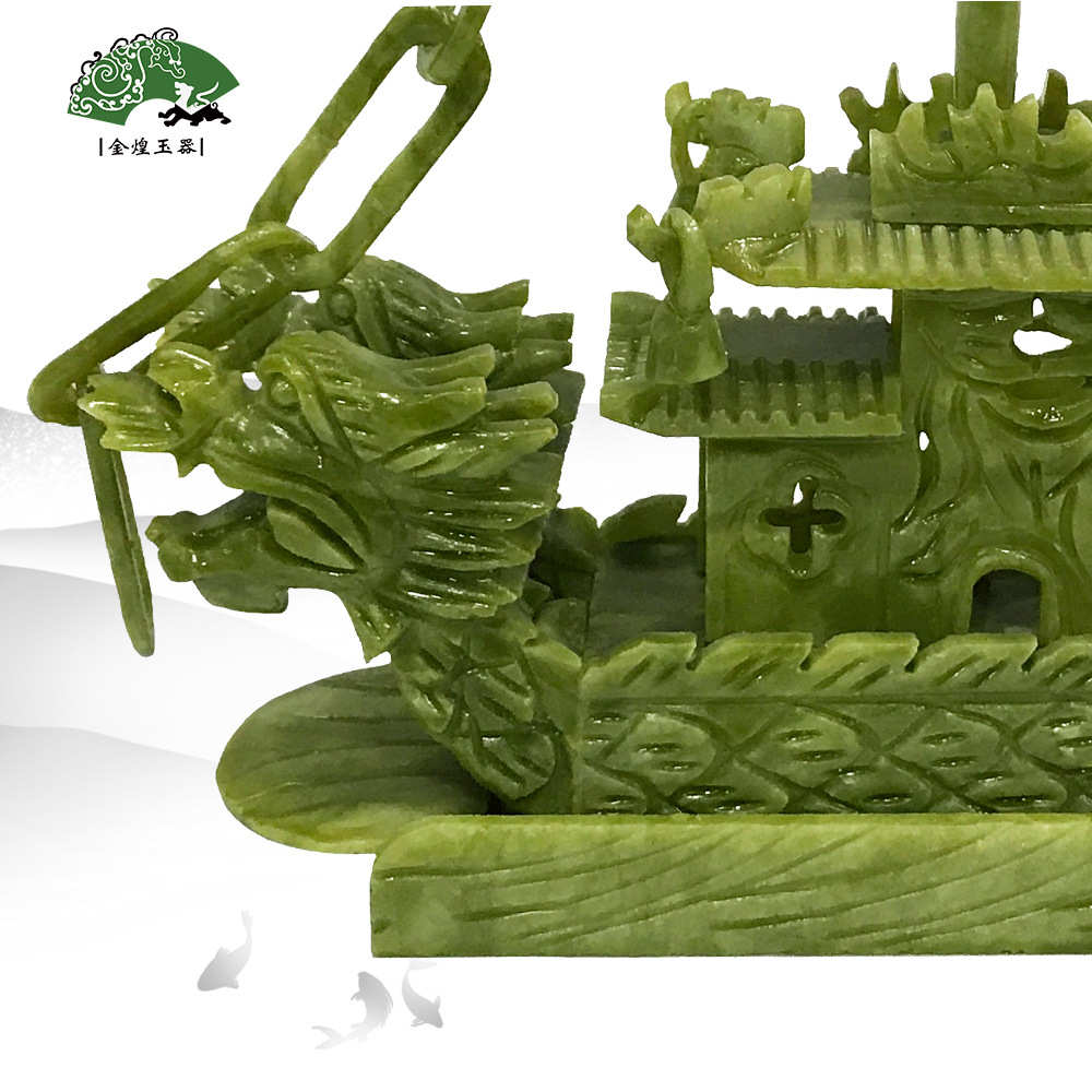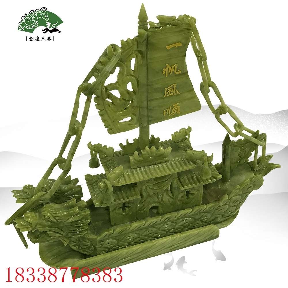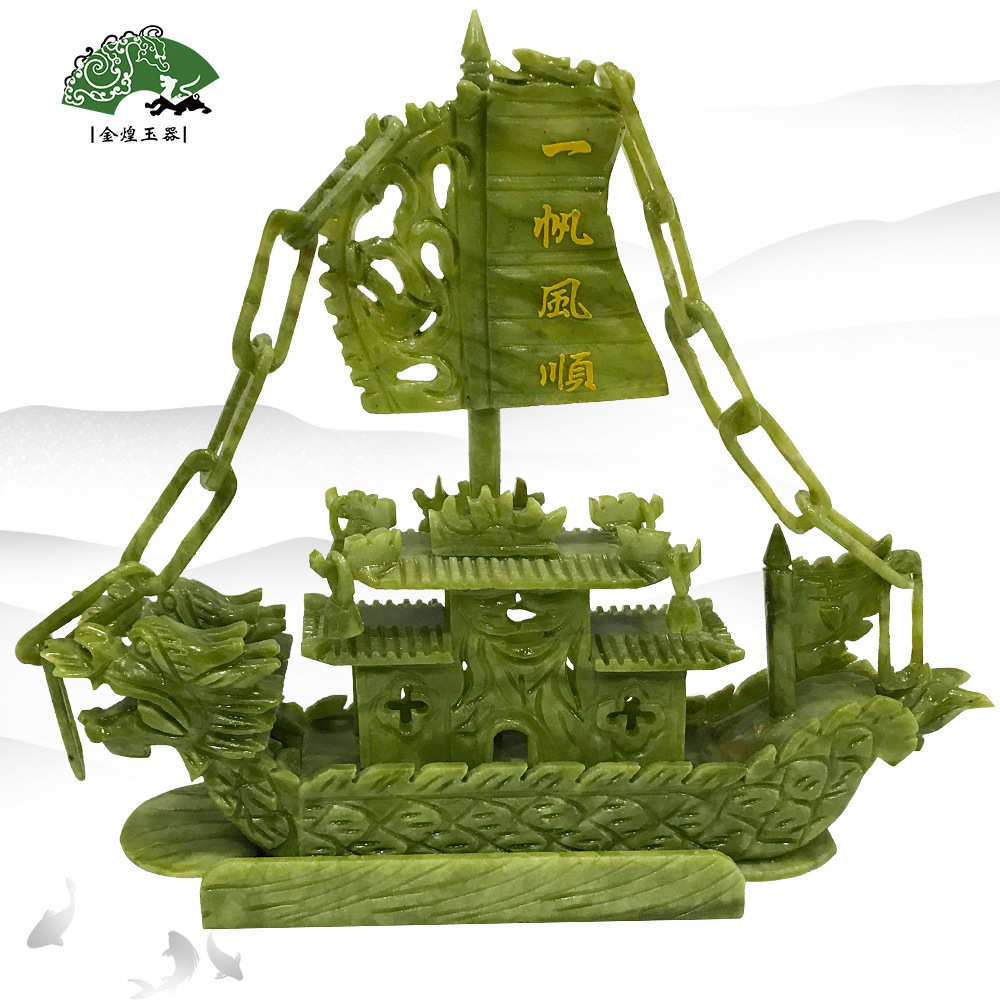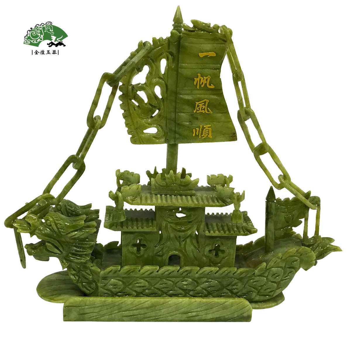 玉石摆件一帆风顺龙船稳步前进办公室客厅装饰手工艺品玉摆件