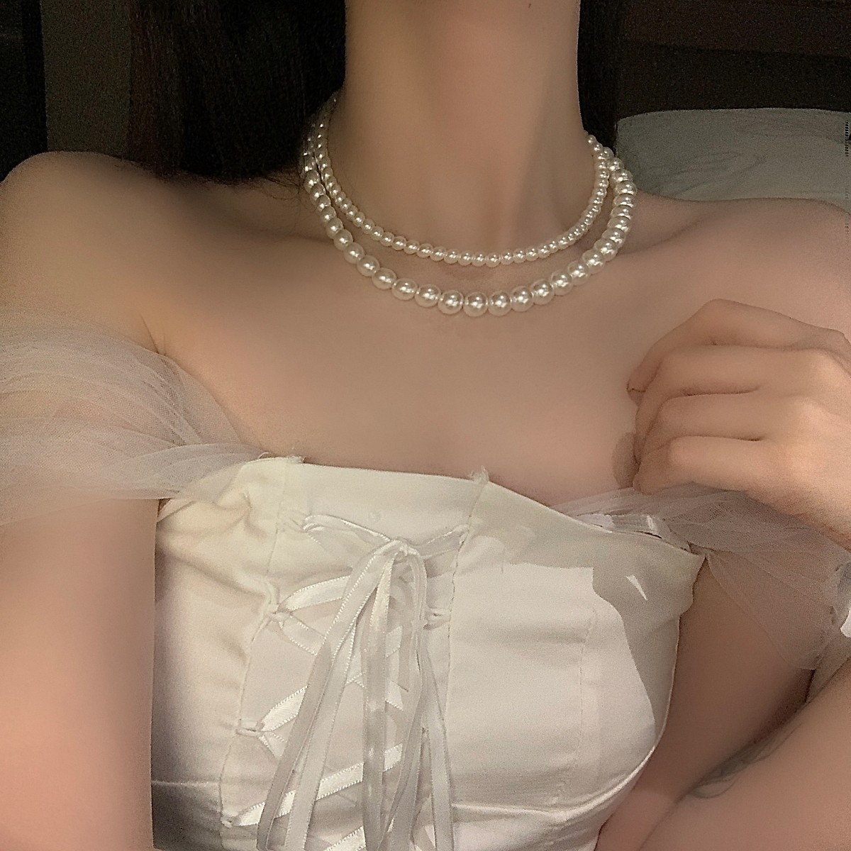法式叠戴fever同款ins博主项链女夏复古串链韩国仿珍珠锁骨链颈链