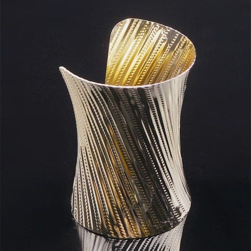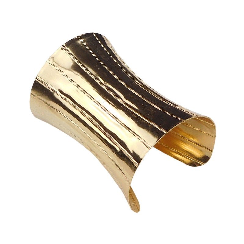 闪亮光泽亮金色高光金属竖条纹护腕式民族风夸张手镯男女饰品摆件