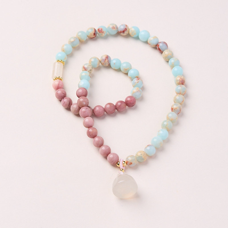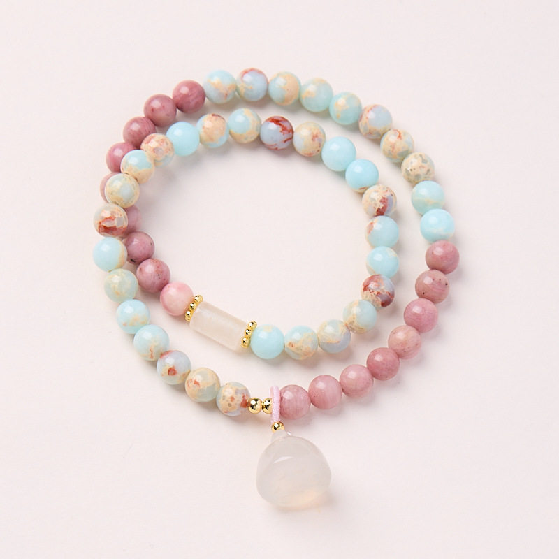 长乐|新中式天然寿山石双圈高档手链女红木纹石莲蓬文玩转运串珠