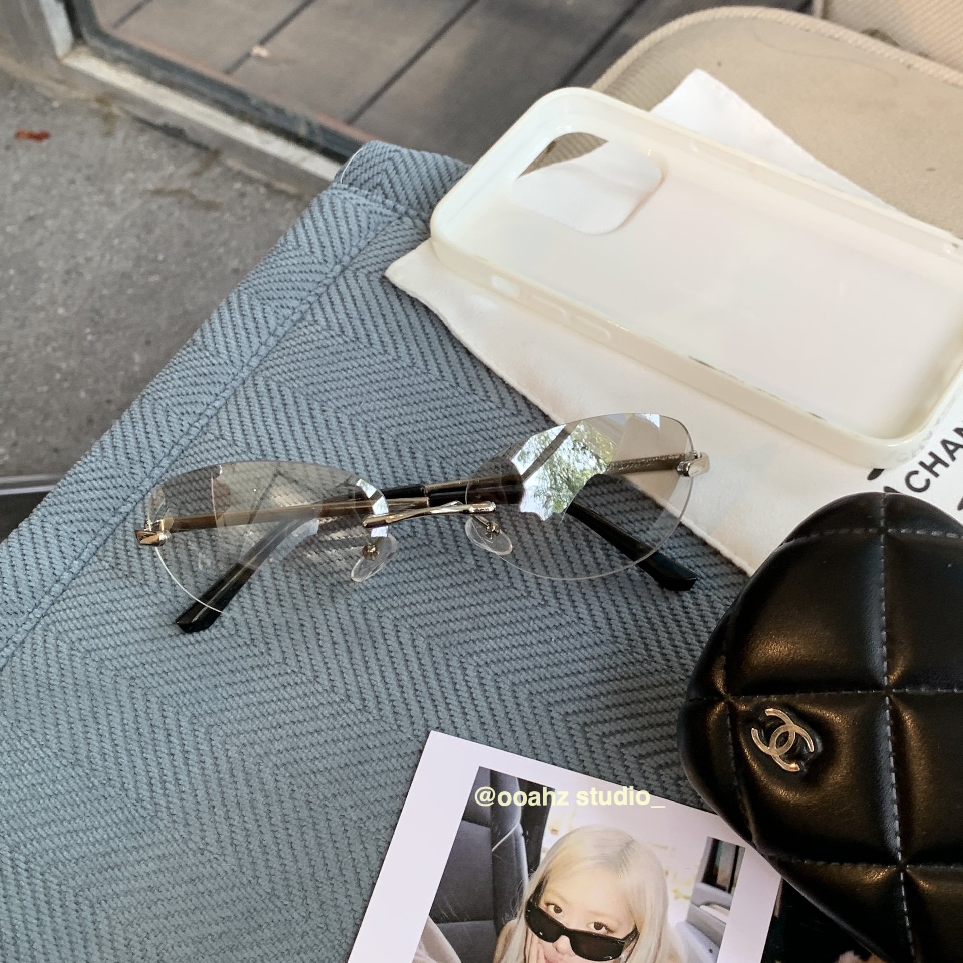 晋江文学~复古无框椭圆太阳镜 街拍金属ins墨镜辣妹Y2K凹造型眼镜