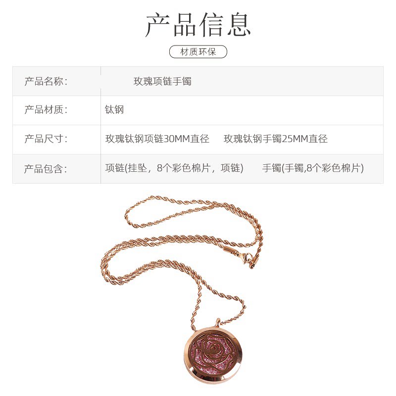 精油玫瑰金镀色项链手镯精油香薰项链玫瑰金镂空吊坠扩香玫瑰钛钢