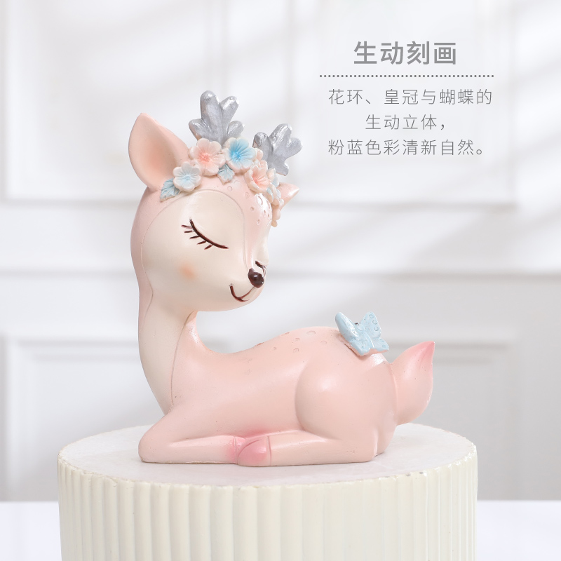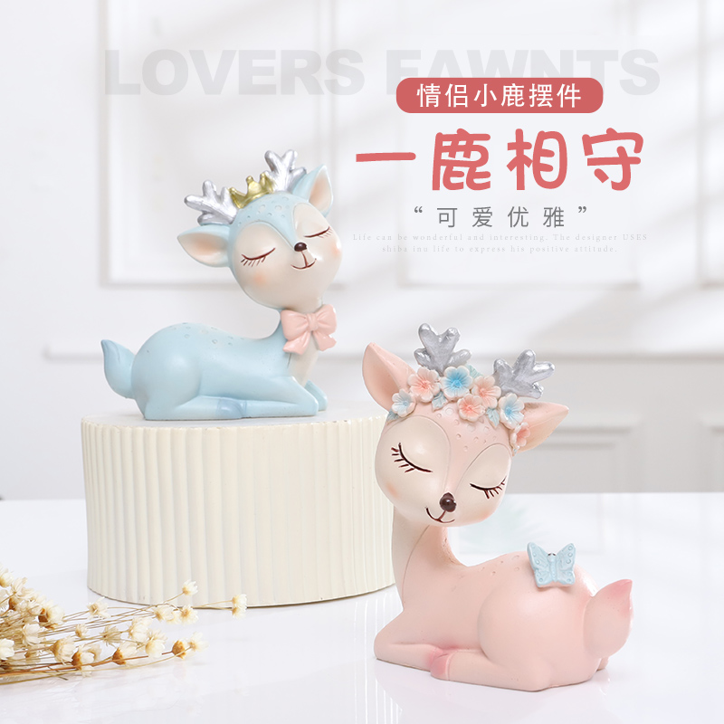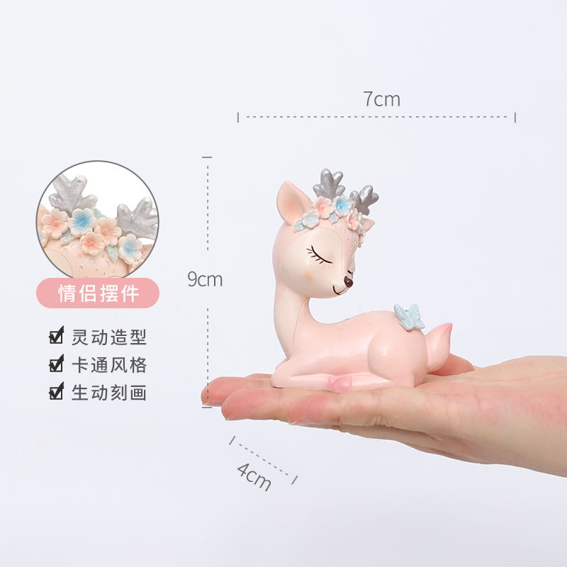 梅花鹿摆件卡通动物一鹿有你办公室摆设创意可爱小鹿家居装饰ins