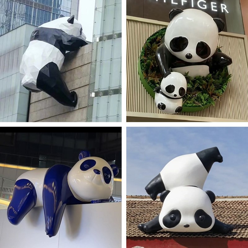户外门头网红店爬墙打卡s熊猫装饰玻璃钢雕塑商场壁挂蜘蛛侠大摆