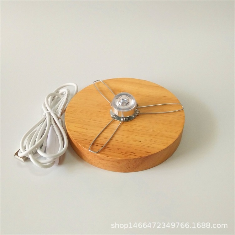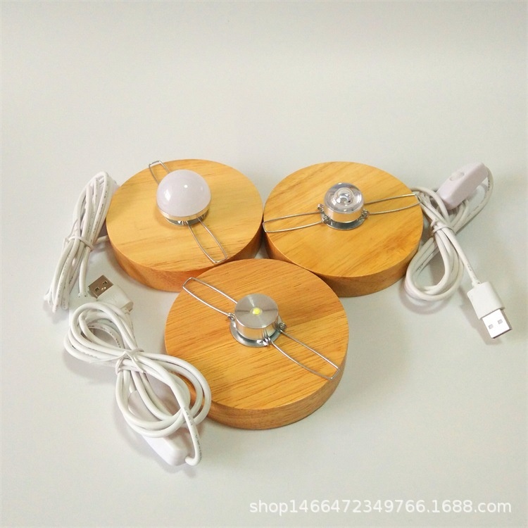 台灯实木圆形底座藤球灯底座USB插头带3W 高亮度LED光源台灯 配件