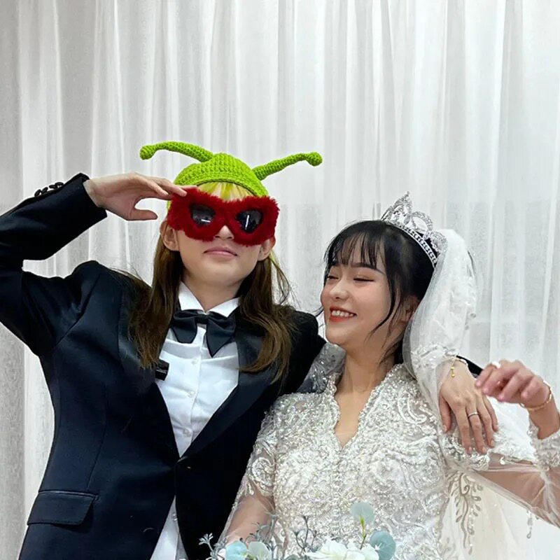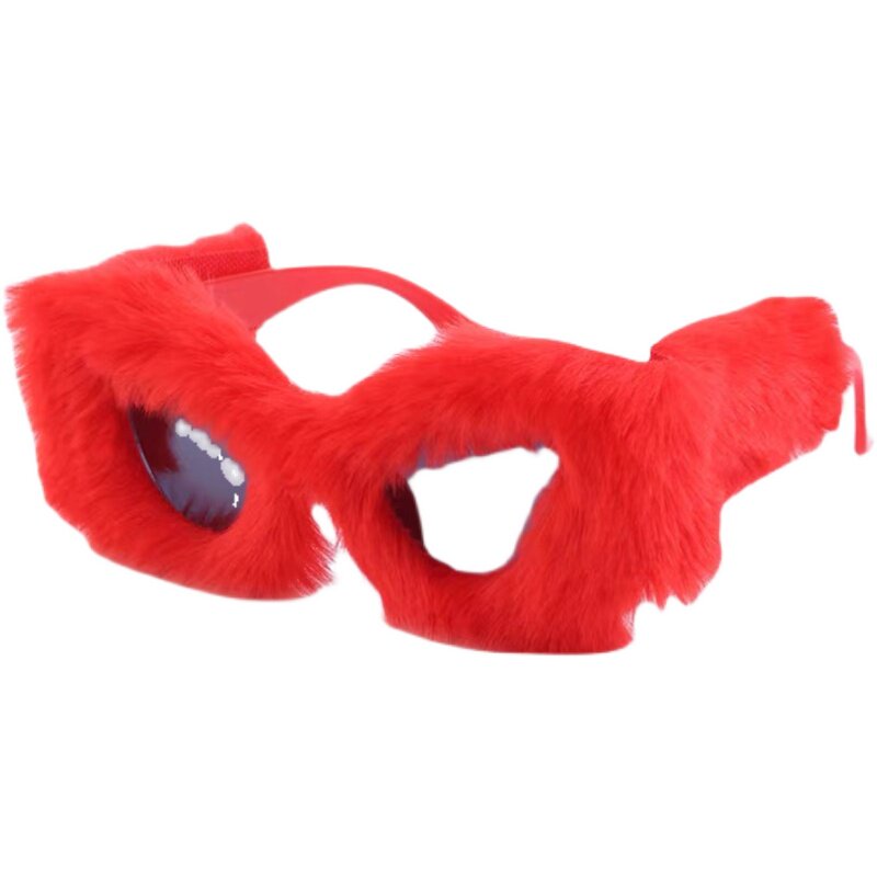 抖音痞幼同款红色毛绒眼镜2022新年网红演出个性装饰搞怪拍照墨镜