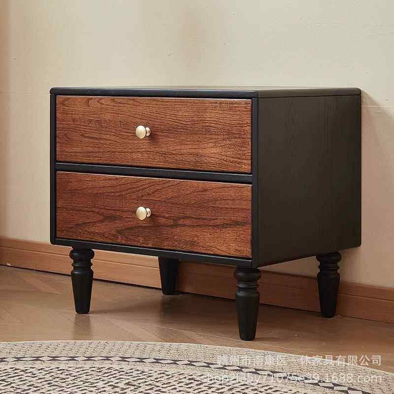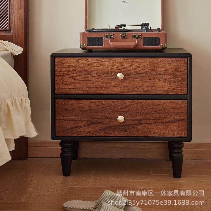 法式复古木质抽屉式实木床头柜家用整理柜简约收纳柜卧室储物矮柜