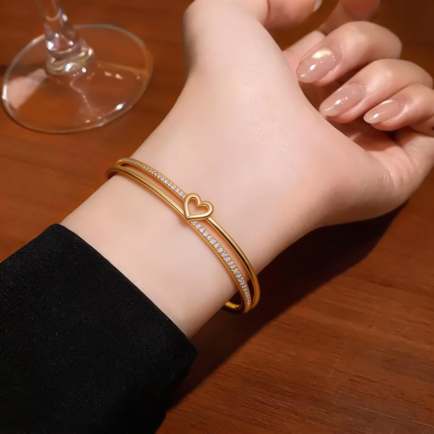 Zircon Heart Bracelet, Minimalist Cross Border Bangle