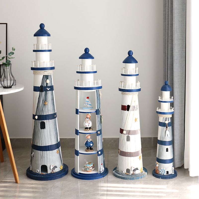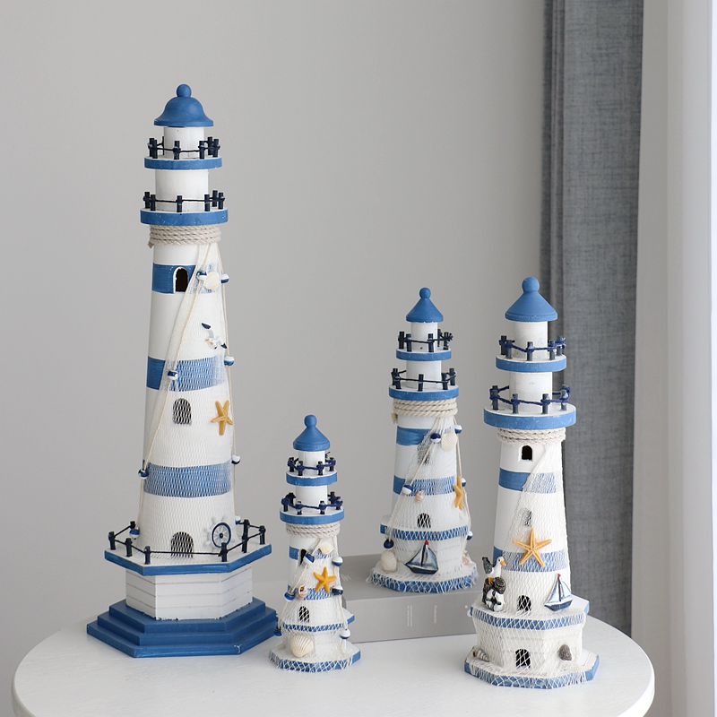 地中海木质做旧灯塔模型摆件家居装饰品创意海洋风工艺品餐厅摆设
