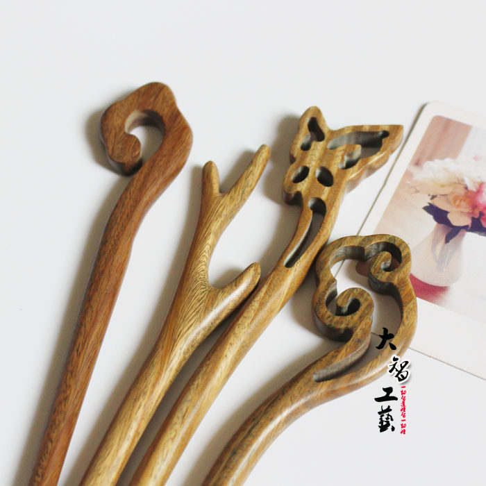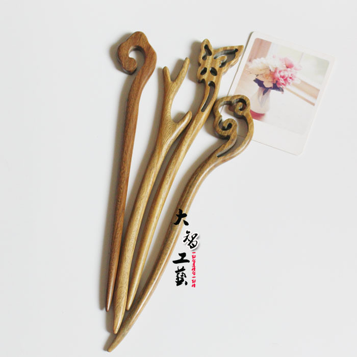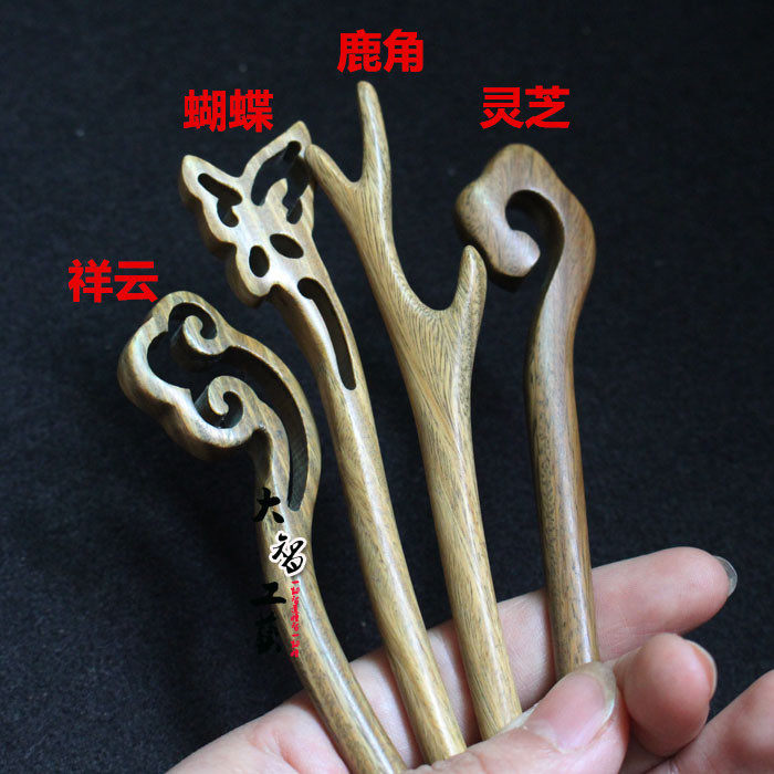 厂家直销 绿檀手工雕刻发簪 复古蝴蝶 檀木发簪子镂空盘发头饰
