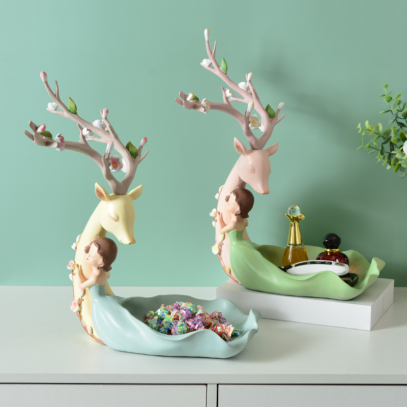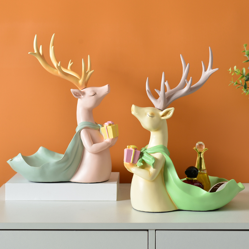 现代家居轻奢鞋柜玄关放钥匙收纳鹿摆件客厅酒柜创意招财桌面装饰