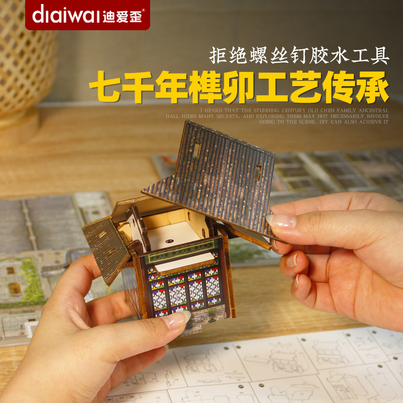 迪爱歪博古架装饰艺术摆件古典岭南园林成品模型微景观书房收藏品