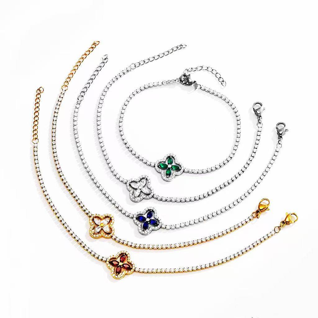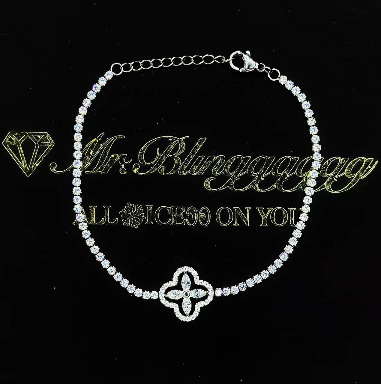 Mr.Blingggggg欧美嘻哈珠宝 不掉色2mm网球拼接四叶草可调节手链