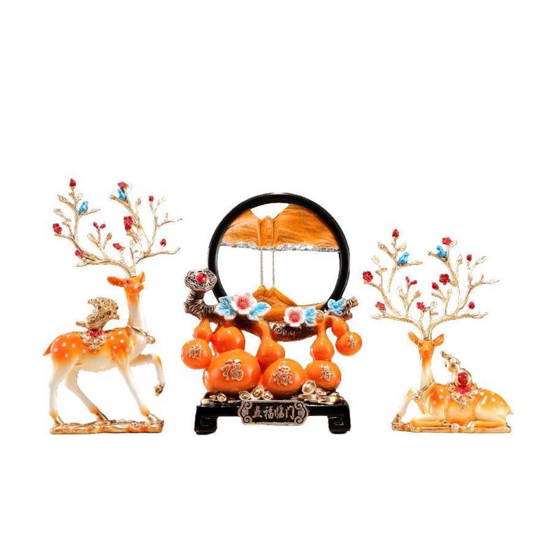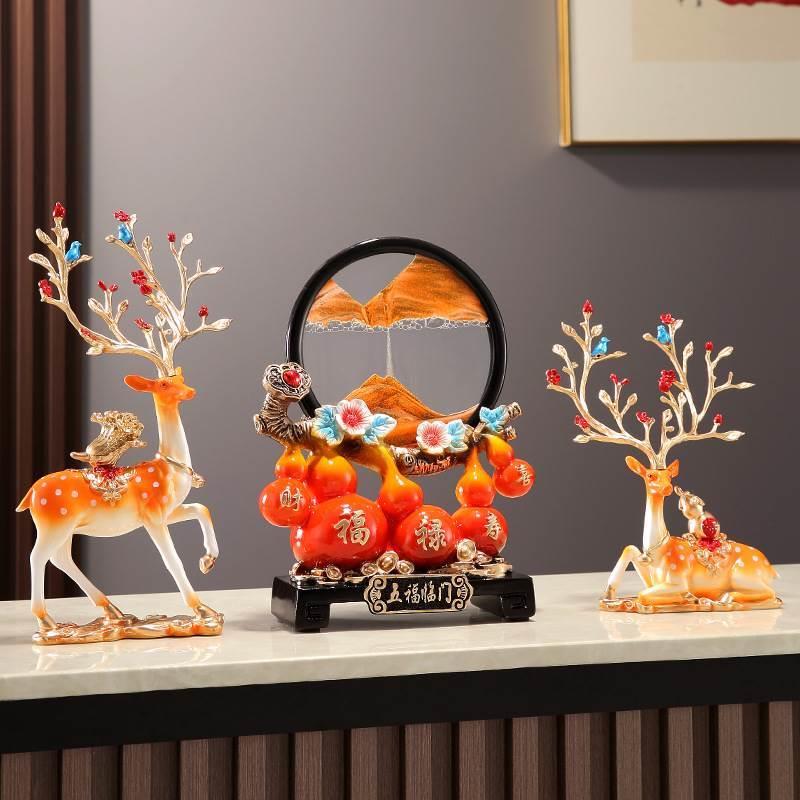 创意解压沙漏流沙画摆件中式五福临门招财鹿装饰客厅玄关乔迁礼物