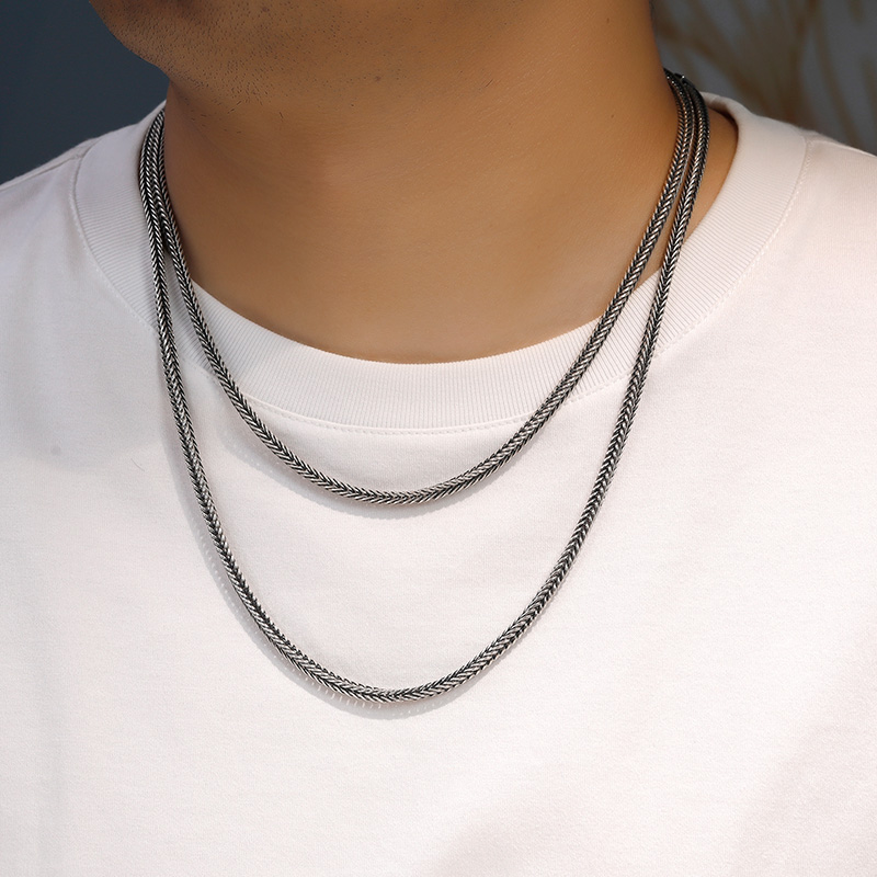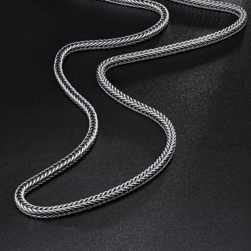 男士个性龙骨项链纯银嘻哈小众潮银链子百搭配饰礼物万字粗链子