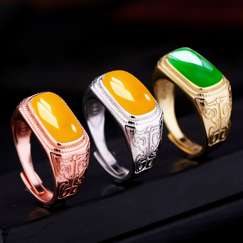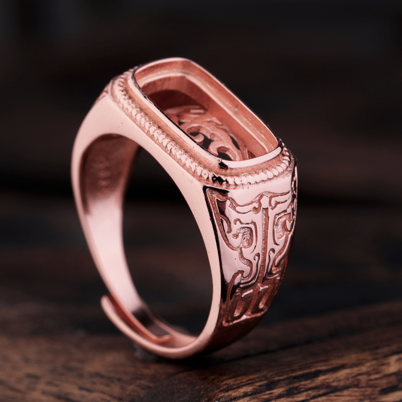 S925纯银戒指空托马鞍托情侣镶嵌墨玉翡翠蜜蜡绿松石戒托6.3*13