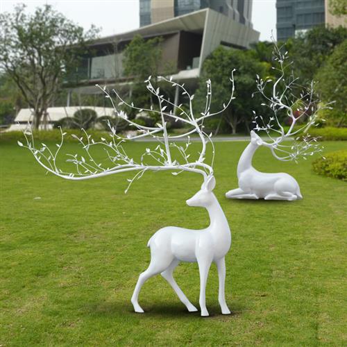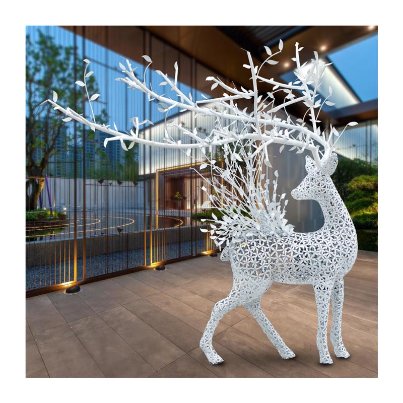 不锈钢镂空梅花鹿雕塑草坪园林酒店售楼部艺术装饰户外镂空鹿摆件